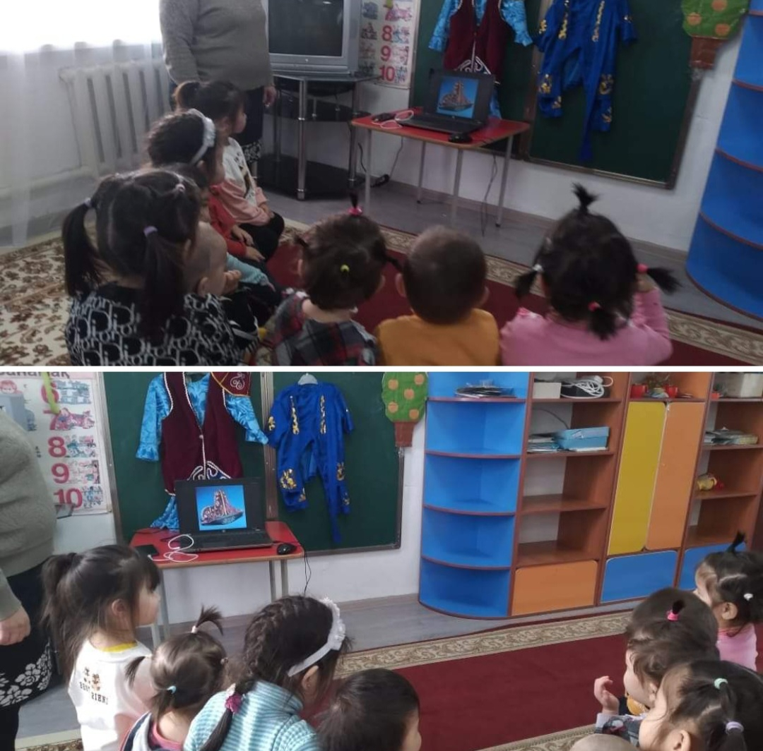 "Қазақтың киімдермен таныстыру" балаларға видеоролик көрсетілді.
