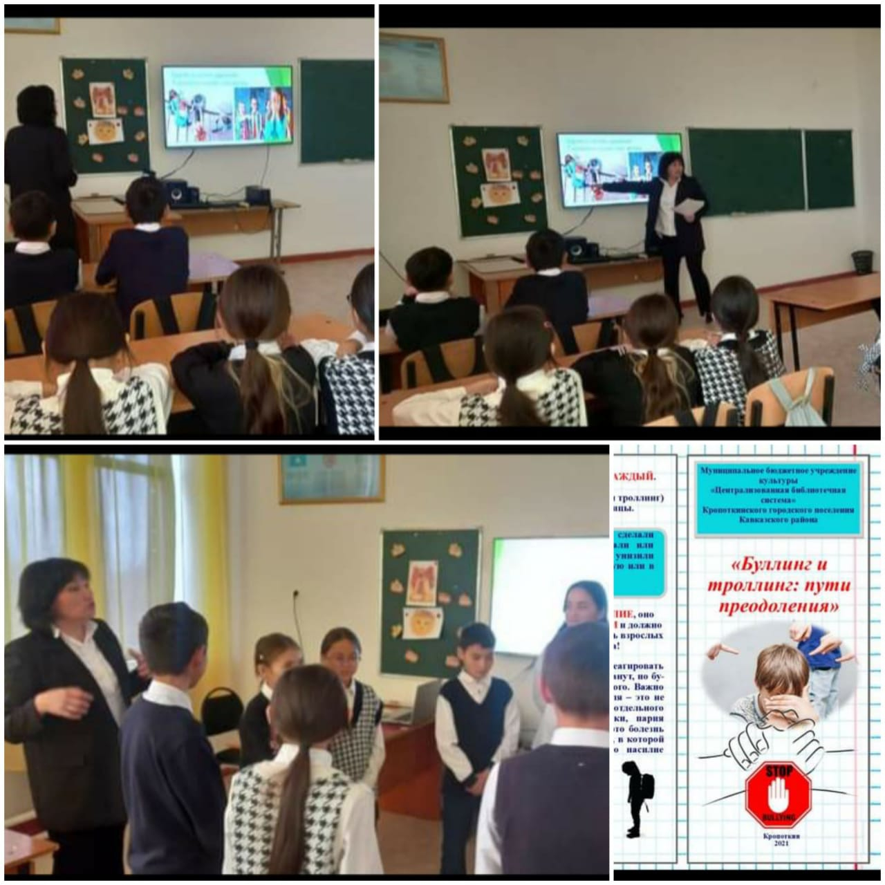 28 қыркүйек күні С.О.Талжанов атындағы ЖББ мектепте педагог-психолог Алинова С. С. ұйымдастырумен оқушылар арасында буллинг және оның алдын алу мақсатында  түсіндірме жұмыстары жоспарлы түрде  жүргізілді.Жоспар бойынша  мектеп оқушылары "Буллингке жол жоқ! " атты бейнеролик, презентация , слайд дайындап көрсеті.
