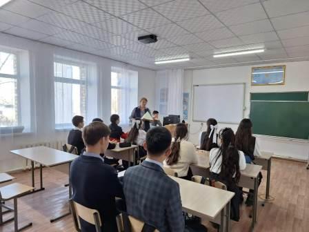 Қарой ЖББМ тарих пәнінің мұғалімі Абильдинова К. М 10-11-сынып оқушыларымен «Бала құқығы» тақырыбында әңгімелесіп,сұрақтарына жауап берді