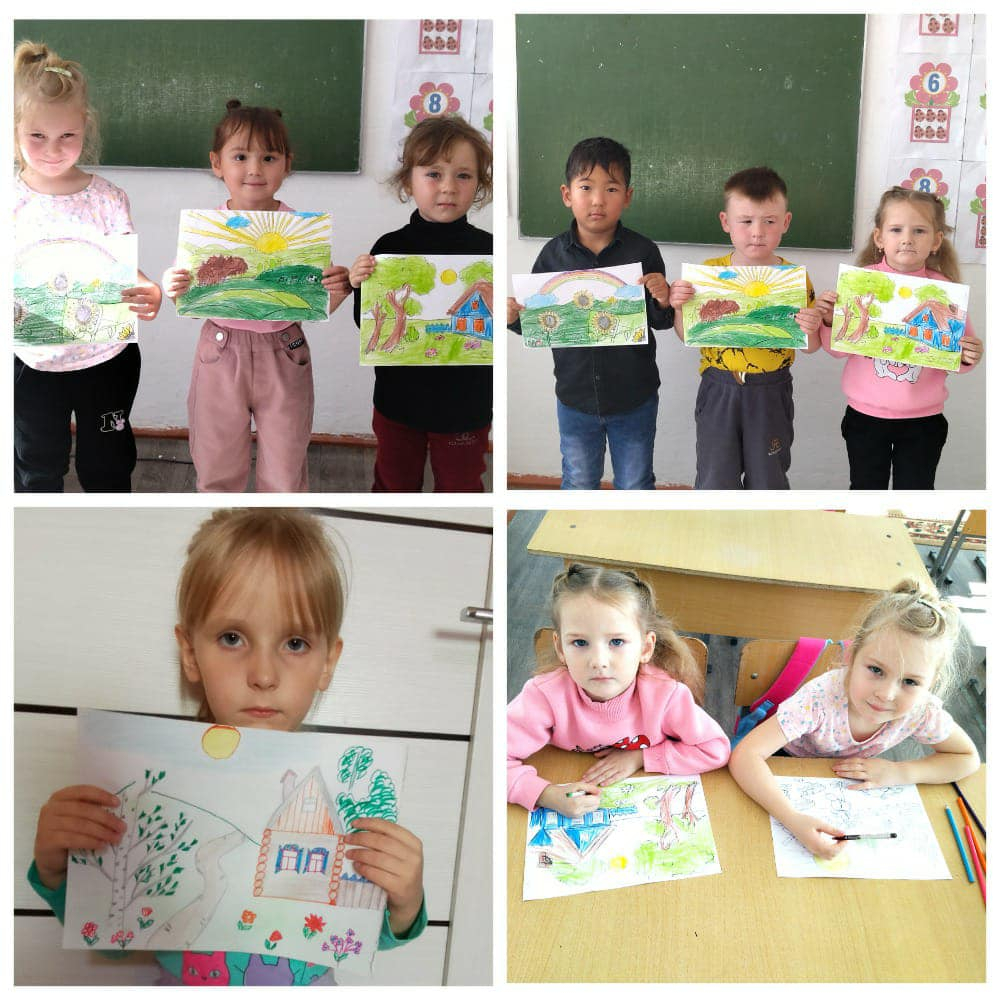 -В КГУ "ОШ имени Абдоллы Асылбекова в 0 русском классе, 20 октября был проведён конкурс рисунков на тему: "Красоты моего села".