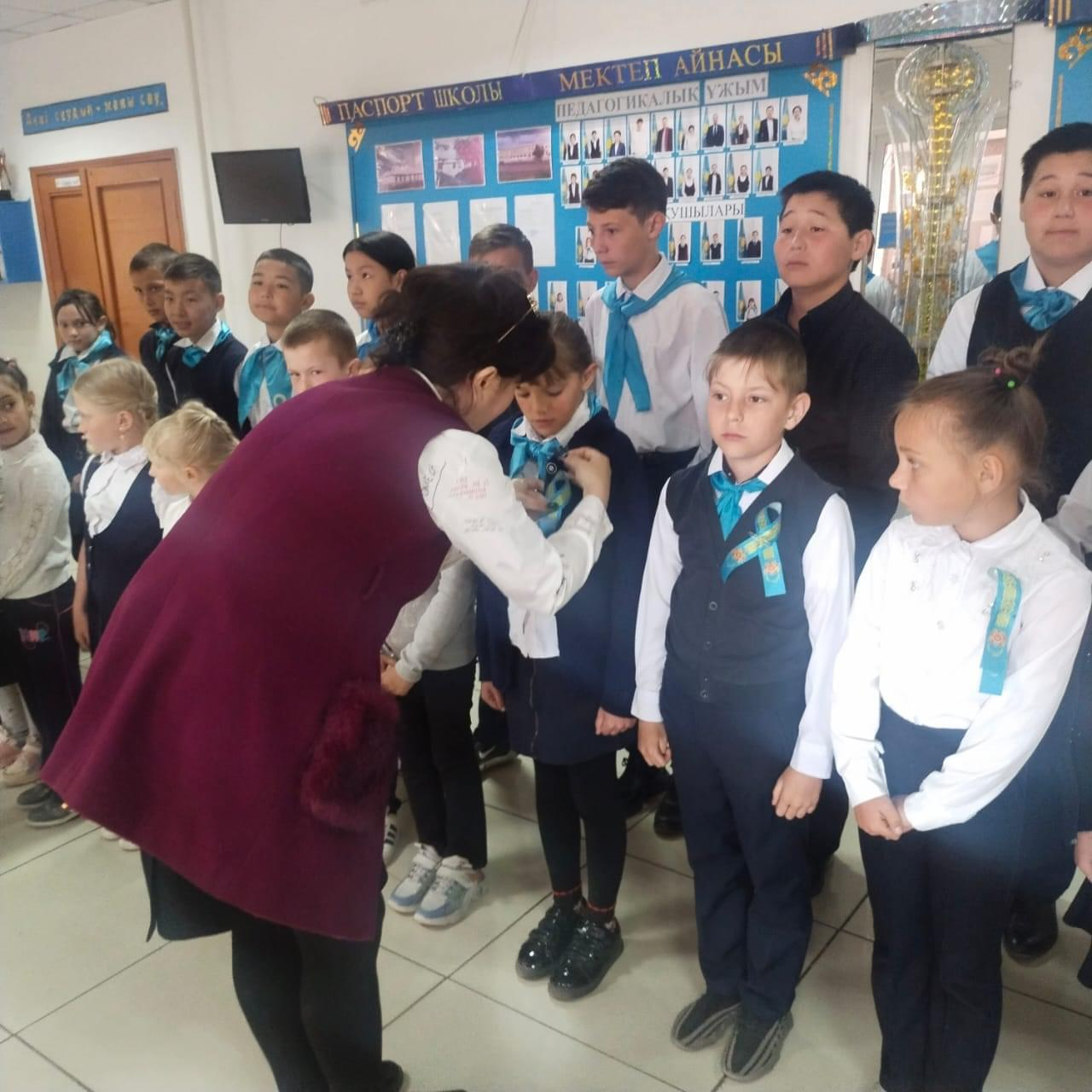 Пушкин НОМ-де "9 мамыр - Ұлы Жеңіс күні!" Мерекесіне орай, оқушыларға патриоттық "Жеңіс лентасы" тағылды. Мақсаты: патриоттық сезімдерін нығайту, Ұлы Отан соғыс ардагерлеріне деген сый-құрметтерін арттыру, лента тағу рәсімінің мағынасын түсіндіру..