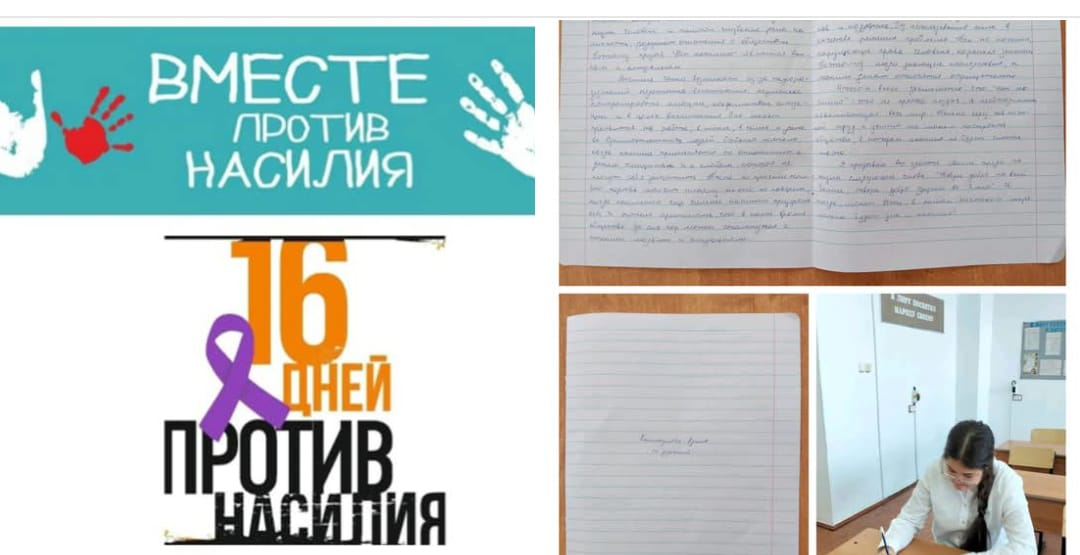 "Зорлық-зомбылықсыз 16 күн" акциясының жоспарына сәйкес "Зорлық-зомбылыққа жол жоқ" тақырыбында эссе жазу байқауы өткізілді.