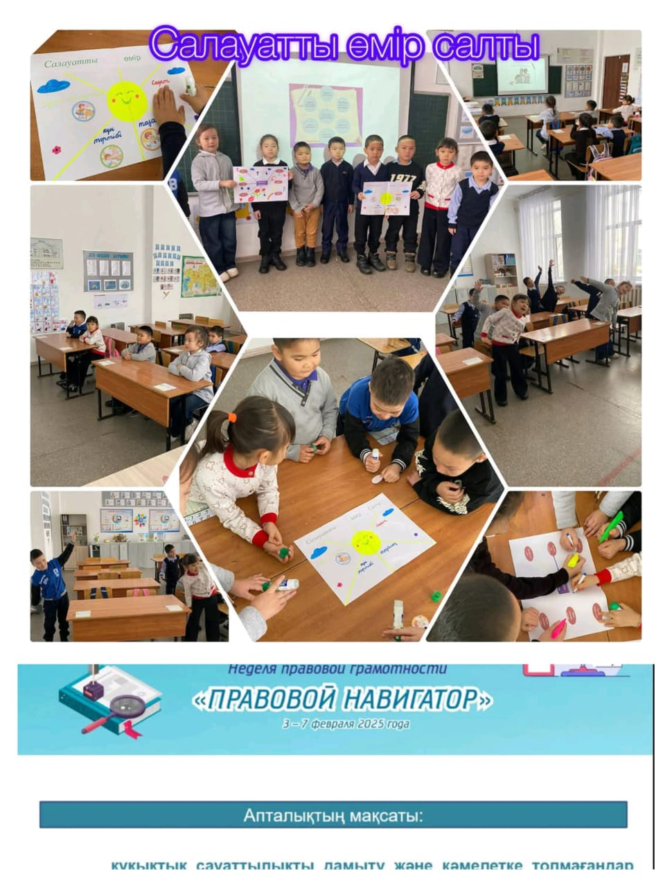 "Құқықтық навигатор" құқықтық сауаттылық апталығы аясында 1 сыныпта "Салауатты өмір салты" тақырыбында сынып сағаты өткізілді.
