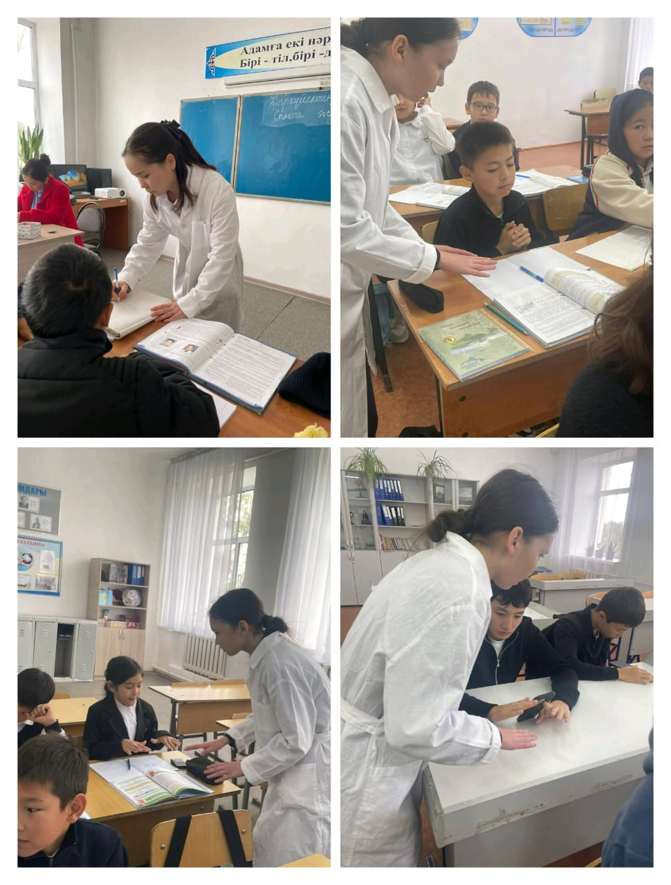 Қарағанды облысы білім беруді дамытудың оқу-әдістемелік орталығының жоспарына сәйкес "Медицинаға қадам"жобасы бойынша Нұра ауданы С.Сейфуллин ЖББ мектебінде, "Тазалық сақшылары" оқушылардың тазалықтарын жұмасына екі рет тексеріп мектеп медбикесіне көмектерін тигізіп жүр.