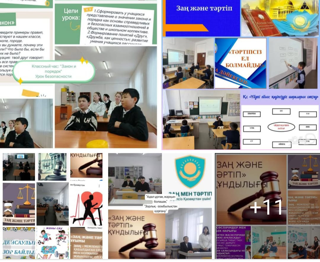 "Заң және тәртіп!" атты тақырыпта барлық сыныптарда сынып сағаты және қауіпсіздік сабақтары өткізілді.