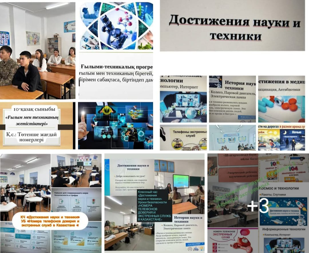 "Адал азамат" біртұтас тәрбие бағдарламасының жоспарына сәйкес "Ғылым мен техникалық жетістіктері" атты тақырыпта барлық сыныптарда сынып сағаты және қауіпсіздік сабақтары өткізілді.