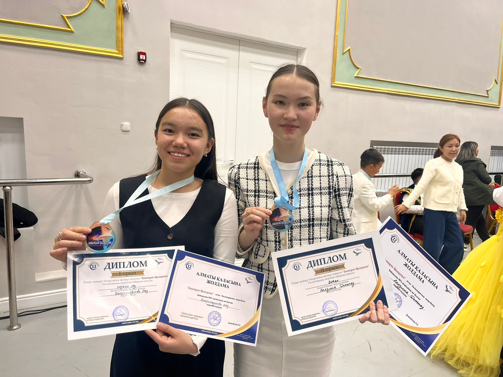 "Жаңарған Қазақстан" республикалық байқауы.Астана қаласында өткен ,мәнерлеп оқудан 1-орын Кайргелдиева Наз,вокалдан 2-орын Камзина Дильназ халықаралық байқауға жолдама алды.