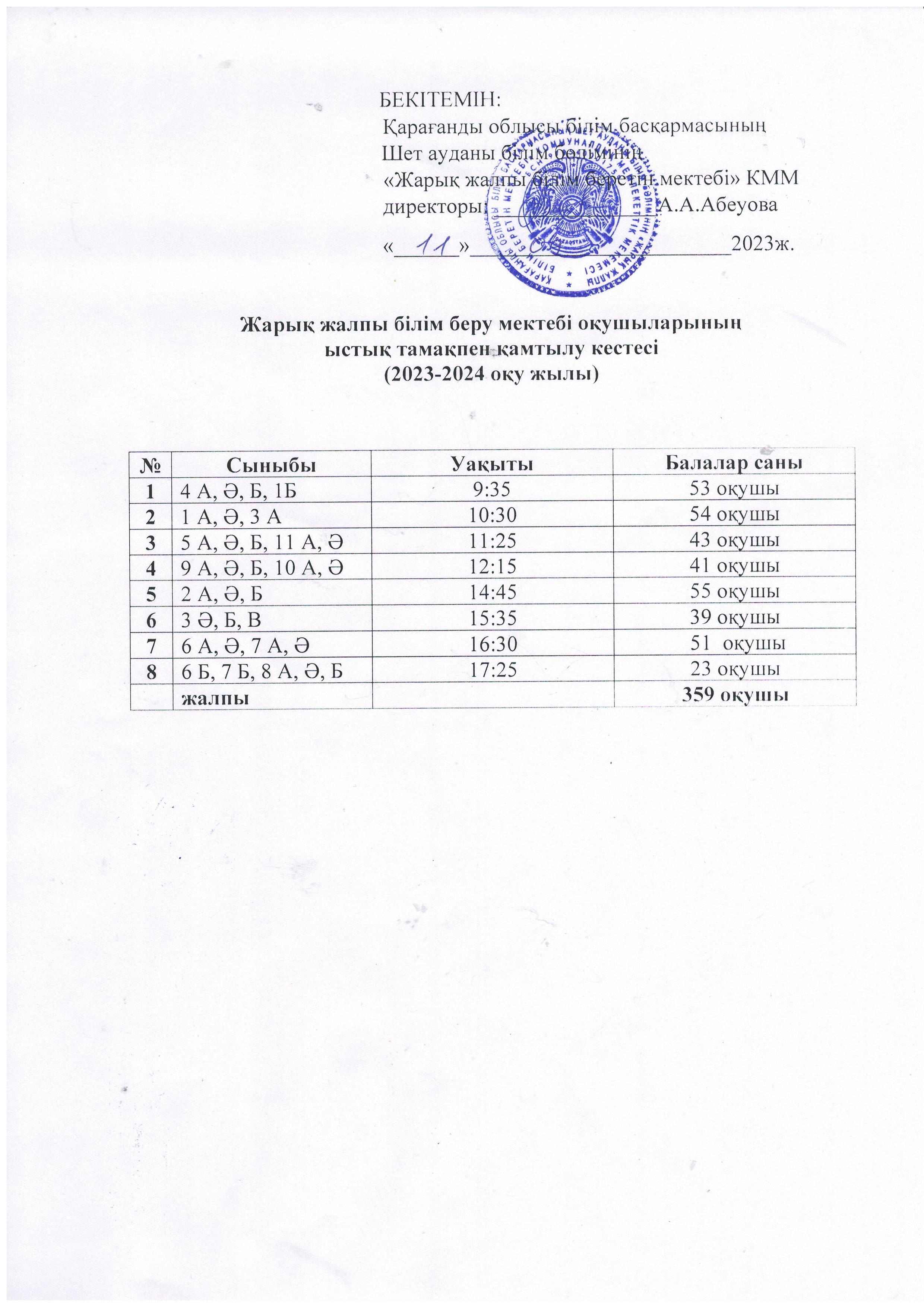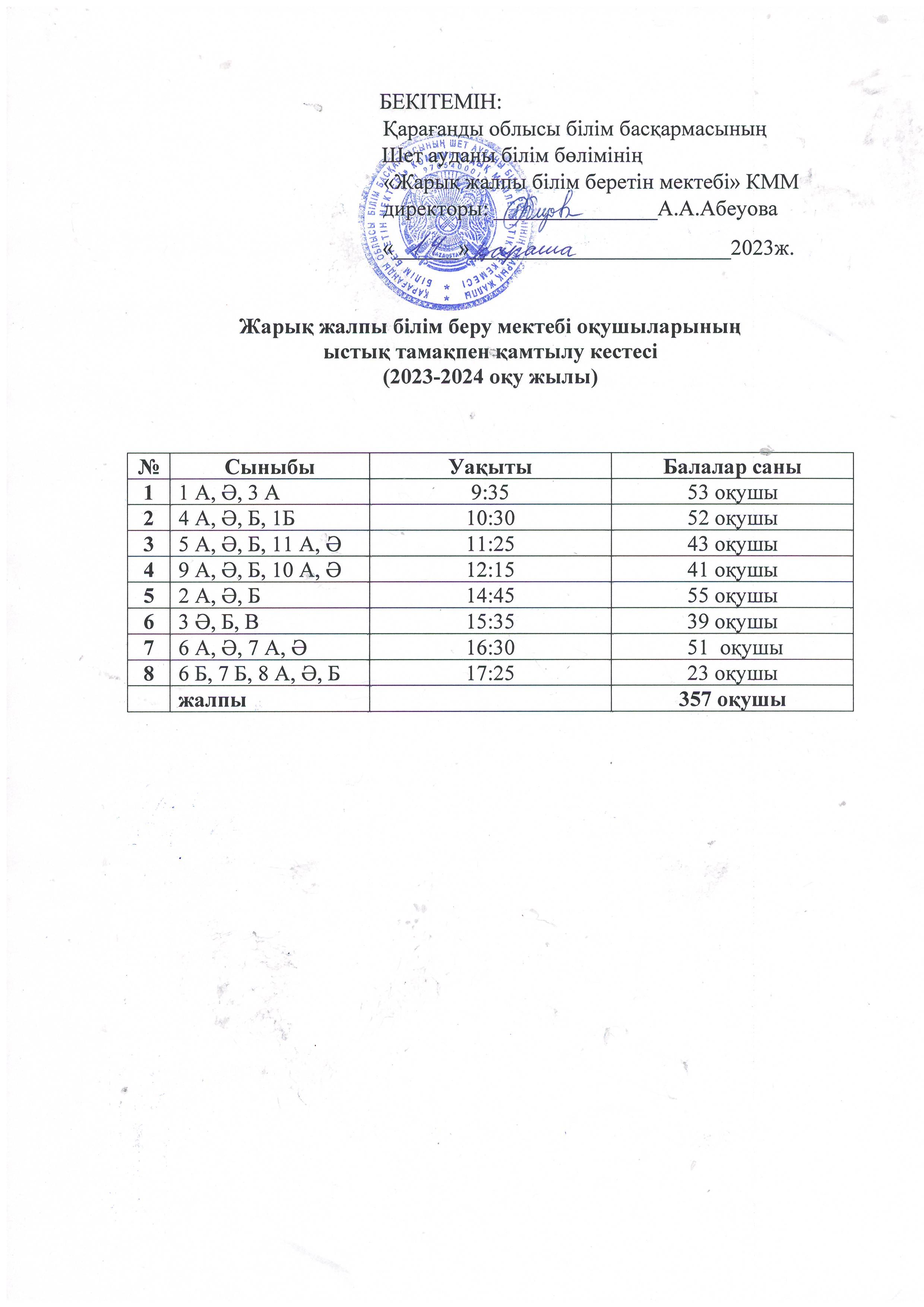 Тамақ кестесі