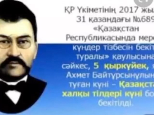 5 қыркүйек - Қазақстан халқы тілдері күніне және Ахмет Байтұрсынұлының 150 жылдығына орай "Тіл-кемел болашақ тұғыры" тақырыбында онкүндіктің (декада) 1- ші күні.