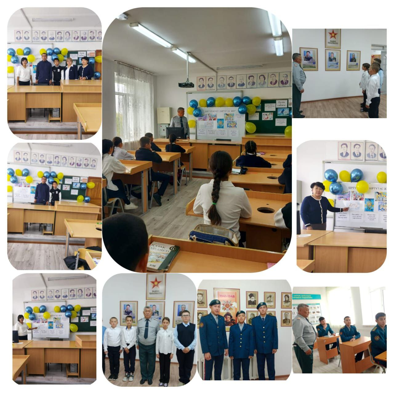 11-ші қазақ, 6-шы қазақ және 5-6 орыс сынып оқушыларымен "БІРТҰТАС ЕЛ-БІРТҰТАС ЖЕР" тақырыбында сынып сағаты өтті. Біртұтас тәрбие-біртұтас елдің болашағын айқындайды. Оқушылардың бойына адалдық, еңбекқорлық, жауапкершілік сынды қасиеттерді сіңіру арқылы бірлік пен тұрақтылыққа қол жеткіземіз. Сондықтанда бірлігі бекем елдің болашағы баянды дей отыра Алғашқы әскери дайындығының ұстазы Жиенбаев Г. К және Мунусов Дәулетпен кездесіп оқушыларға адамгершілік, рухани құндылықтарды дарыта отырып, Отан қорғау-әр азаматтың қасиетті міндеті екенін түсіндіріп, оқушыларға сұхбат жүргізді. 5-6 сынып оқушылары соңында сергектік ойын көрсетіп, көңілдерін көтерді.
