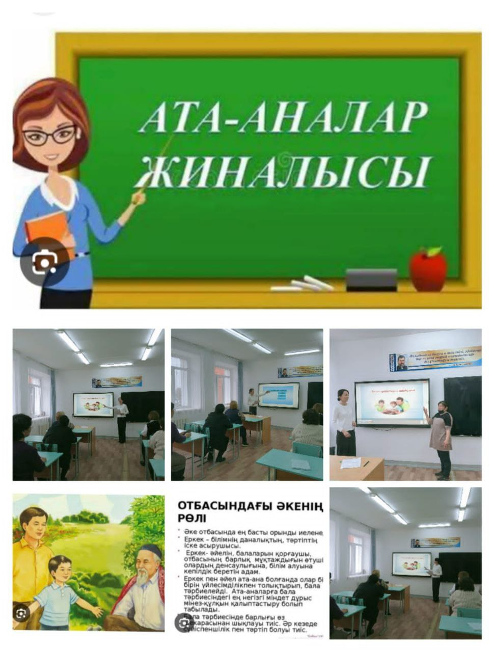 25 қараша күні 8,10 қазақ және 9 орыс сыныптарының ата аналарымен "Ыталандыру және жазалау" және "Бала тәрбиесіндегі әкенің рөлі" тақырыбында ата-аналар жиналысы өткізілді. Жиналыста ата-аналармен отбасындағы әкенің алатын орны балаға берер тәлім - тәрбиесі жайлы айтылды.Сонымен қатар әр баланы ынталандыру әдістері мен жазалау шараларының салдары туралы сөз қозғалды.25 қараша күні 8,10 қазақ және 9 орыс сыныптарының ата аналарымен "Ыталандыру және жазалау" және "Бала тәрбиесіндегі әкенің рөлі" тақырыбында ата-аналар жиналысы өткізілді. Жиналыста ата-аналармен отбасындағы әкенің алатын орны балаға берер тәлім - тәрбиесі жайлы айтылды.Сонымен қатар әр баланы ынталандыру әдістері мен жазалау шараларының салдары туралы сөз қозғалды.