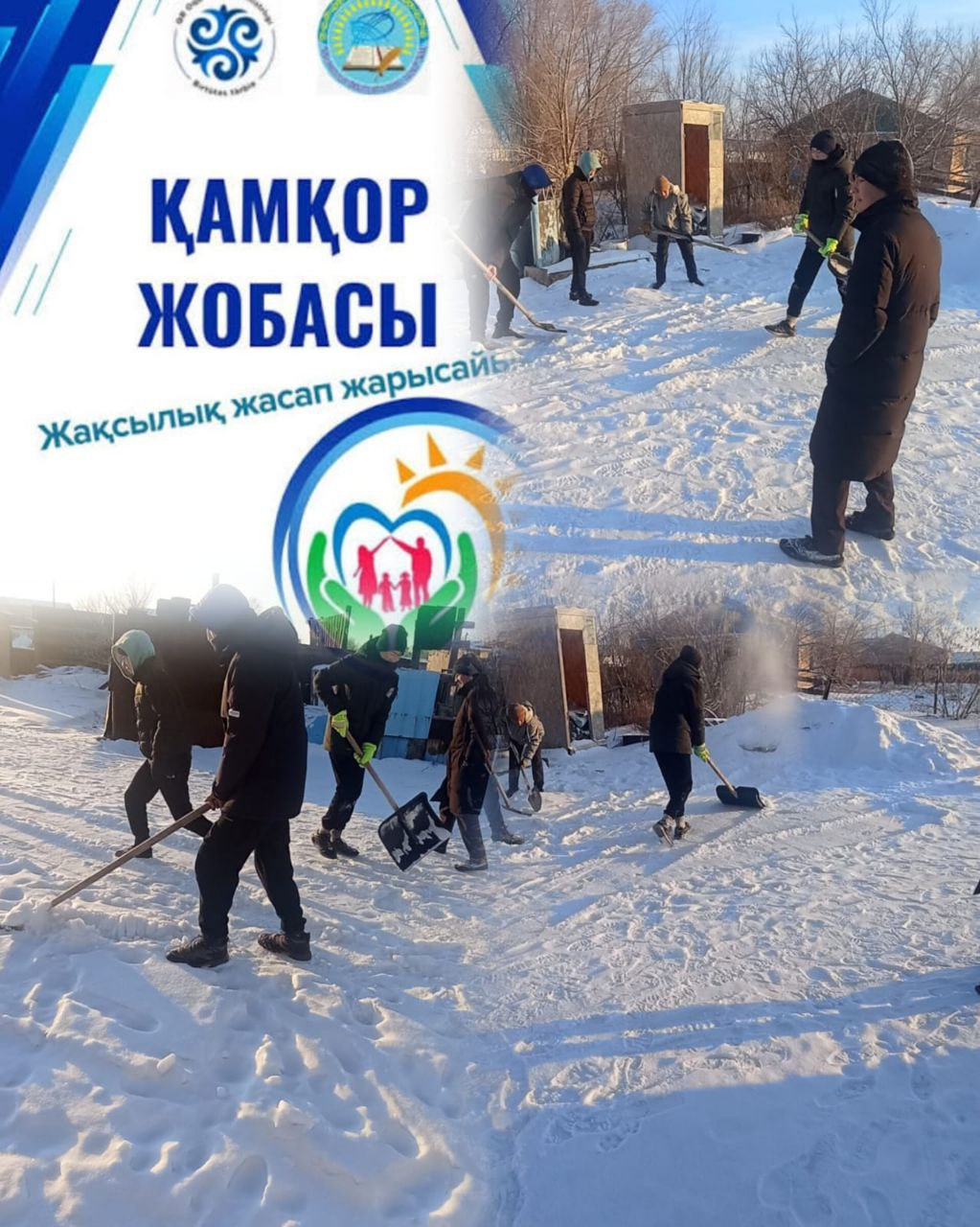 Қаңтар айының 26 күні ,"Қамқор жобасы " аясында мектеп волонтерлері жалғыз тұратын зейнеткерлер мен қарт адамдардың ауласын қардан тазартып, қолғабыс етті. Акция аясында волонтерлер көмекке аса мұқтаж жандарға қолдау көрсетіп, арасында мейірімділік пен белсенді азаматтық ұстаным мәдениетін қалыптастыруда.Айта кету керек, көрсетілетін көмек тек физикалық еңбекпен шектелмейді. Волонтерлер тұрмыстық басқа да жағдайларға қолғабыс етіп, қарияларға рухани қолдау жасайды.«Қарт адамдар үшін мұндай жұмыс оңай емес. Сондықтан волонтерлердің көмегі біз үшін өте маңызды. Қазіргі жастардың үлкендерге құрметпен қарап, осындай игі істерге атсалысып жүргені қуантады. Барлығыңызға алғыс айтамын», -деді қарт әжеміз.