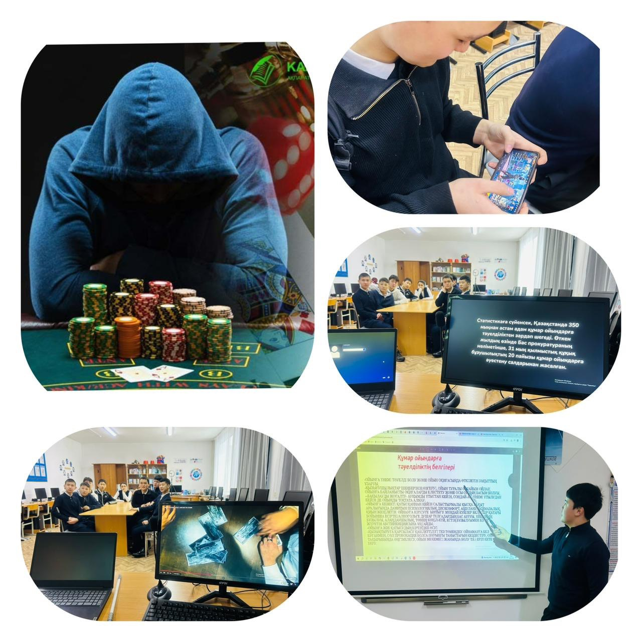 Ойын құмарлық (лудомания) – қазіргі қоғамдағы өзекті мәселелердің бірі. Әсіресе жасөспірімдер арасында онлайн ойындар мен бәс тігудің кең таралуы олардың уақытын, денсаулығын және болашағын қауіпке тігуі мүмкін. Лудомания адамды тәуелділікке әкеліп, оқу үлгерімінің төмендеуіне, қаржылық қиындықтарға және психологиялық күйзеліске себеп болады. Сондықтан әрбір жас саналы таңдау жасап, бос уақытын пайдалы істерге арнағаны жөн. Салауатты өмір салтын ұстану, спортпен айналысу және кітап оқу – жарқын болашақтың кепілі деп пікір сабақ өтілді.