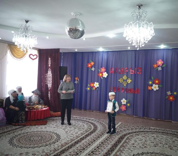 Наурыз мерекесіне орай өткізілген іс-шара соңында директордың ОЖ орынбасары Петрова С.И. «Қазақ халқының ұлттық нақыштағы бұйымдары» атты отбасылық шығармашылық көрмеге қатысқан тәрбиеленушілер мен олардың отбасын алғыс хаттармен марапаттады