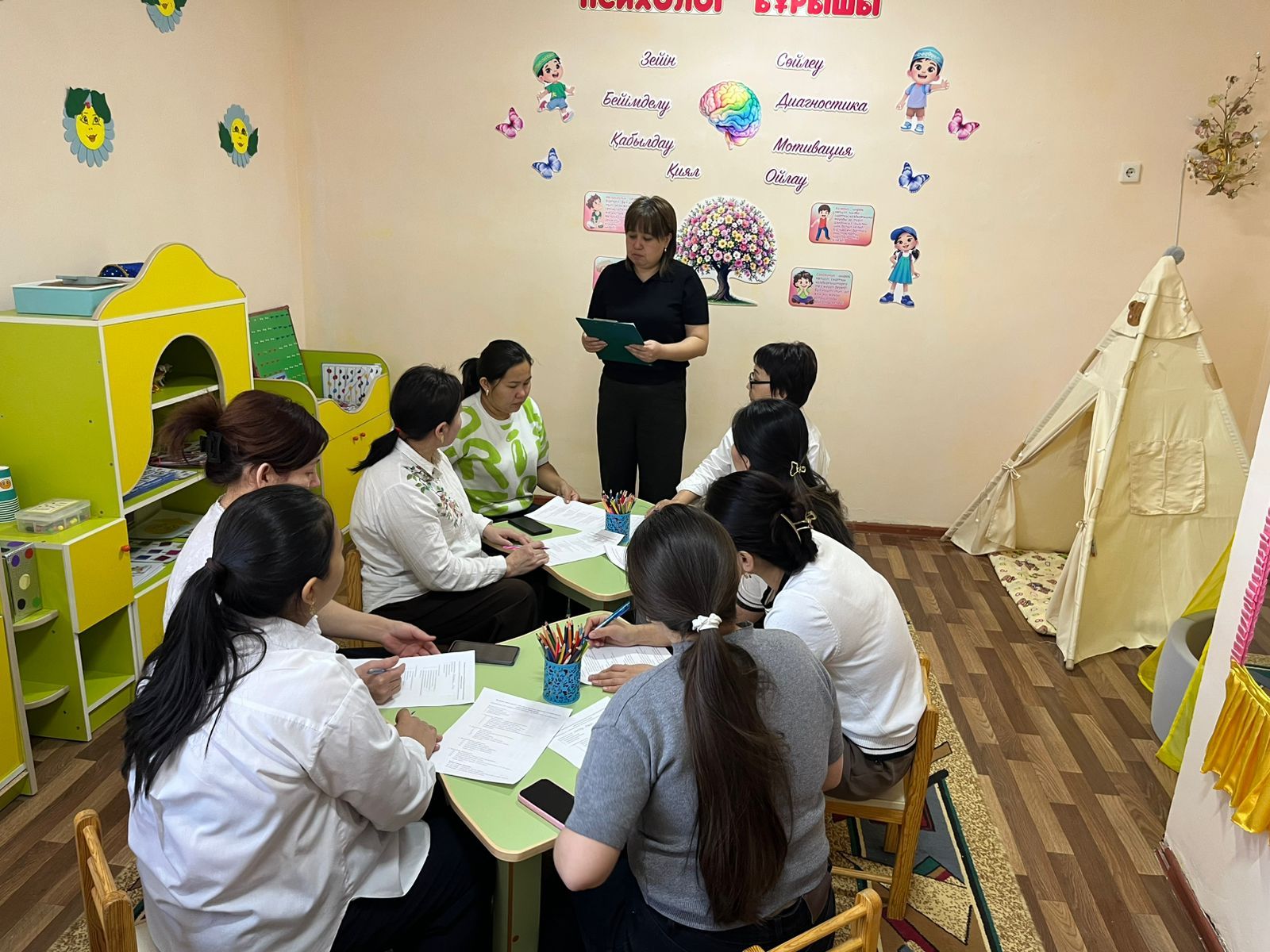 Бүгін «Аққу» бөбекжай» КМҚК-да мектепалды топ тәрбиешілерімен «Болашақ бірінші сынып оқушысының портреті» тақырыбында тәрбиеленушілерге диагностика жүргізілді. Сауалнама әр балаға жеке толтырылып, бағалау шкаласы арқылы ұпаймен бағаланды.