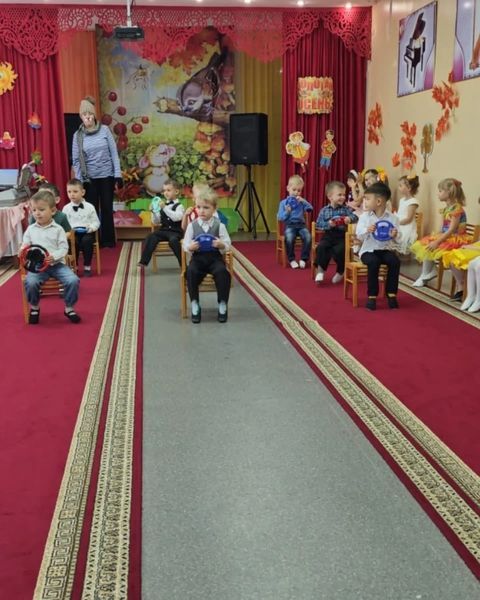 В зале повсюду словно в лесу, расположились осенние, разноцветные листья. Вся обстановка очень напоминала осенний лес, а звуки лесной мелодии, еще более усиливали это впечатление. Воспитанники ясли-сада читали стихи, пели песни, играли, танцевали.