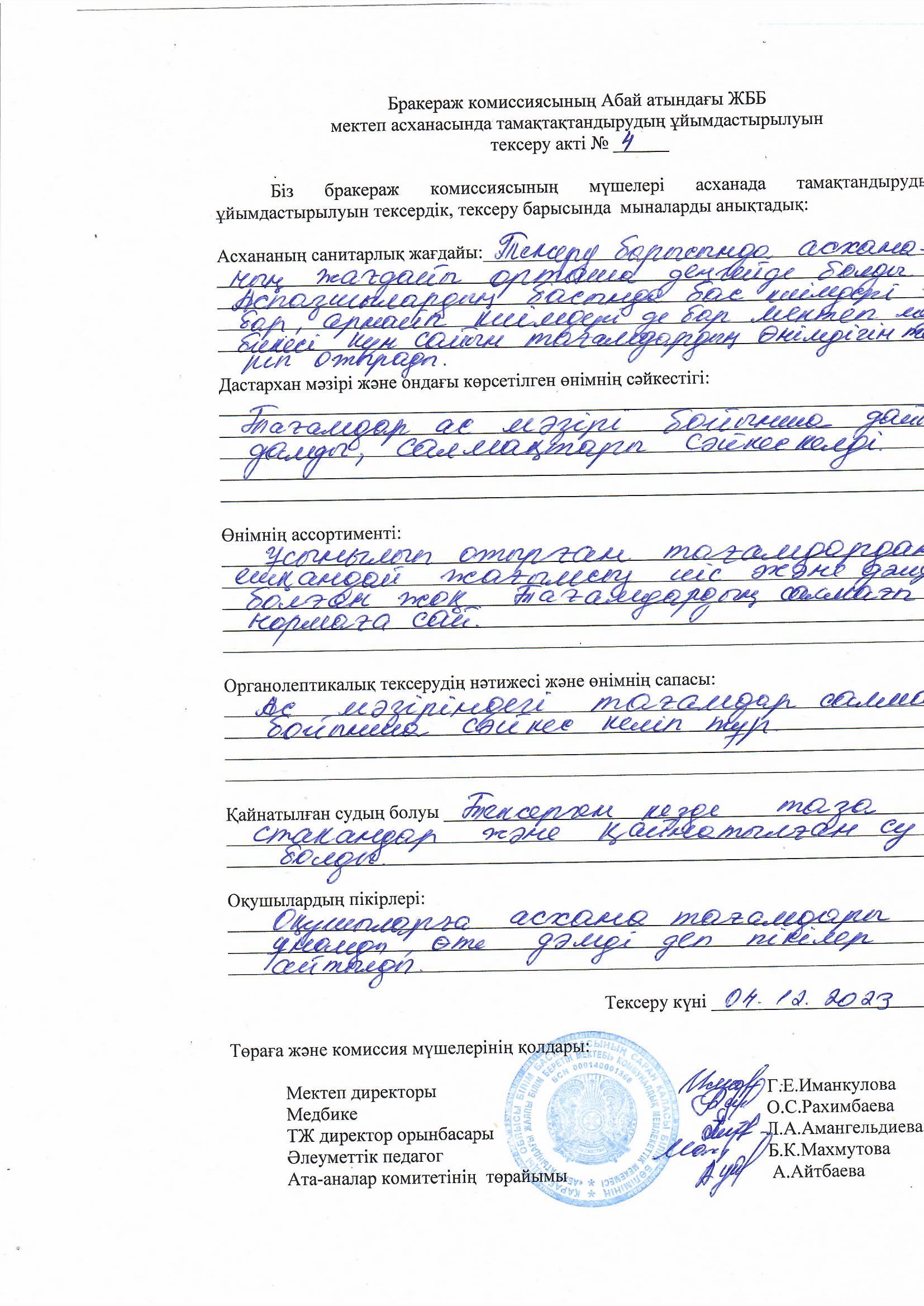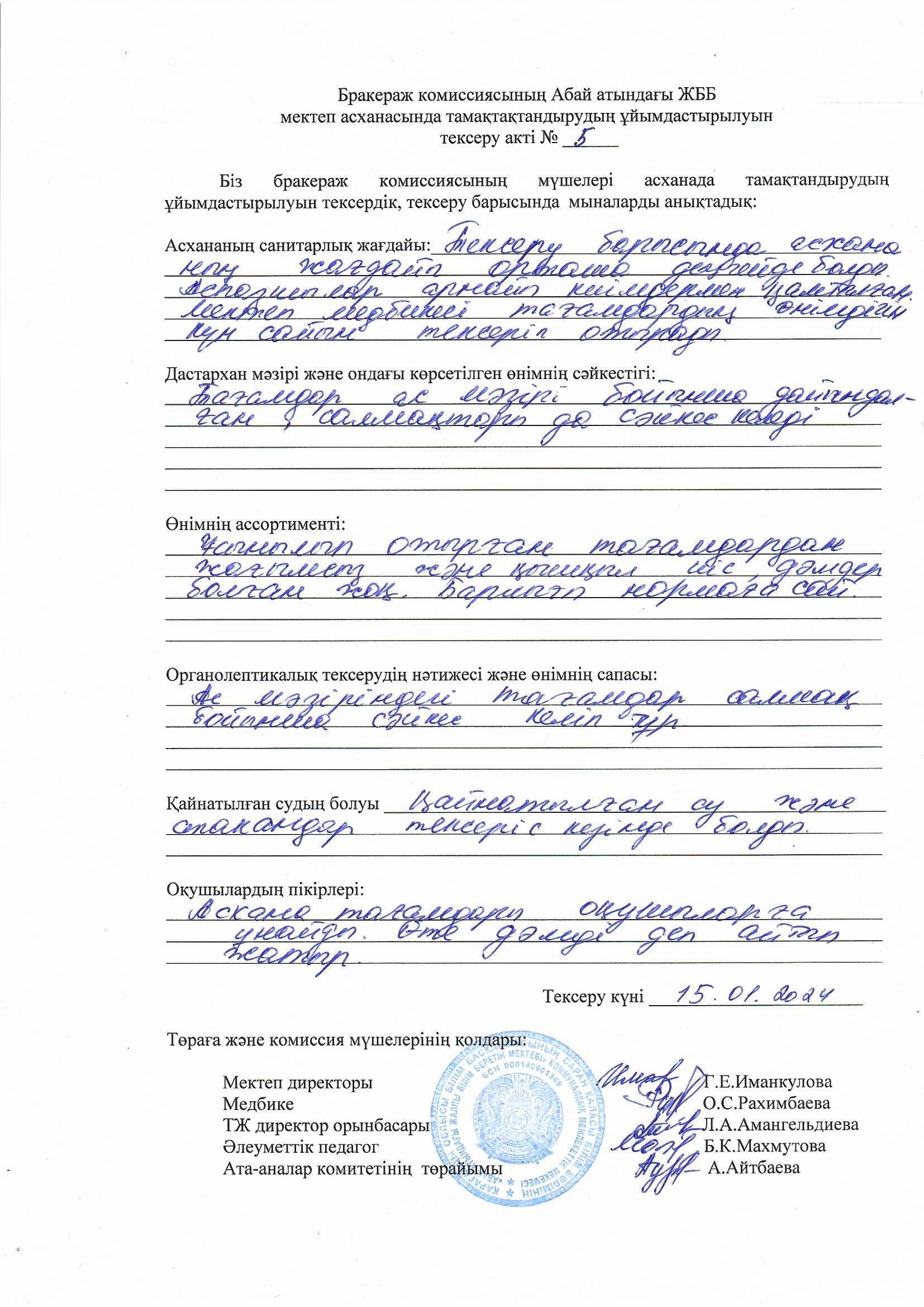 Акт №1 тамақтану сапасыАкт №1 тамақтану сапасы |