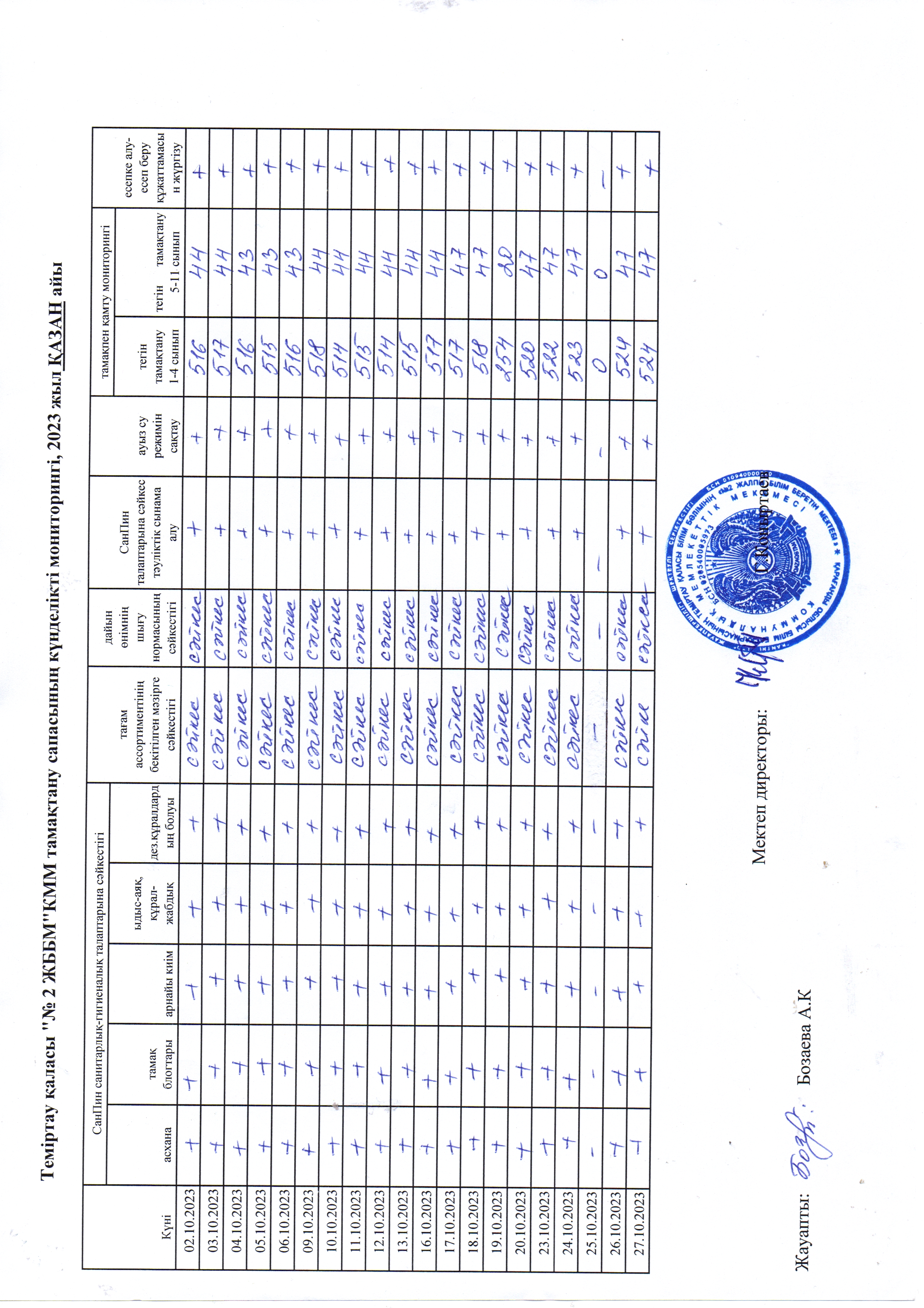 Қазан айындағы күнделікті тамақтану мониторингі.Қазан айындағы күнделікті тамақтану мониторингі. |