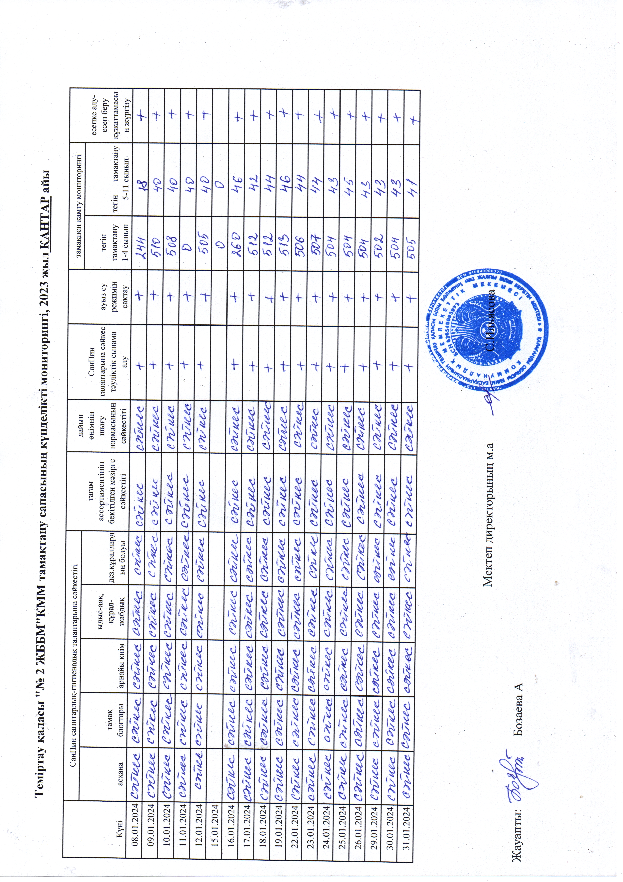 Тамақтану сапасына мониторинг жүргізу актісі. Қантар айыТамақтану сапасына мониторинг жүргізу актісі. |