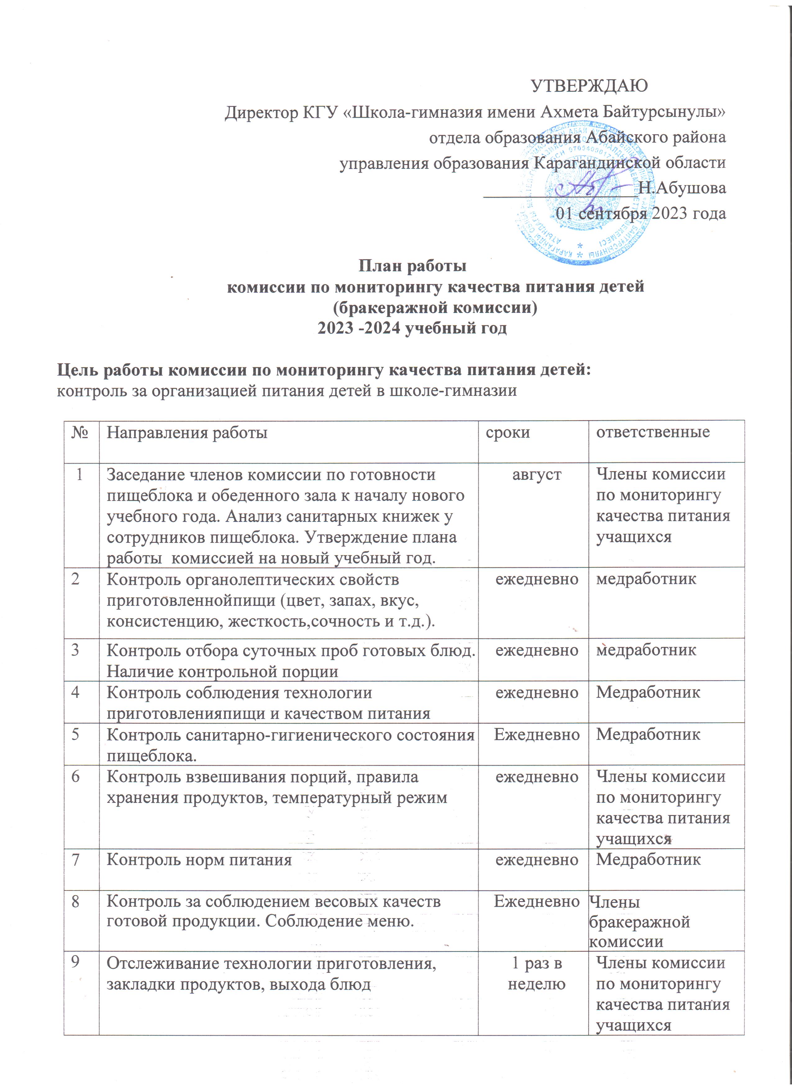 план работы комиссии по мониторингу качества питанияплан работы |