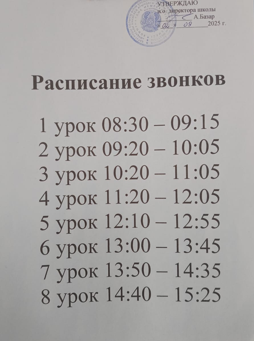 Қоңыраулар кестесіВремя |