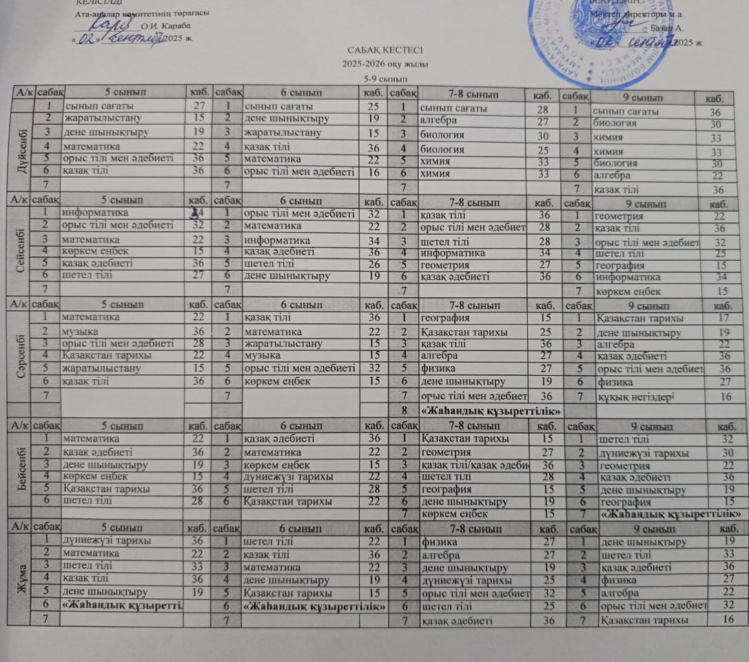 5-11 сыныптарға арналған сабақ кестесіУроки |