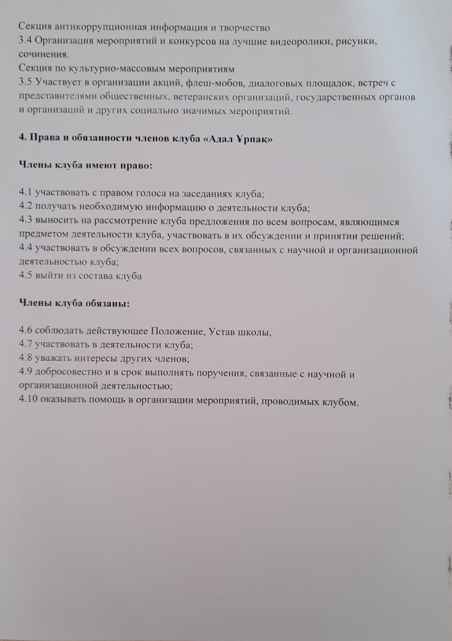 ПоложениеДобровольный школьный клуб "Адал Ұрпақ" страница 2 |