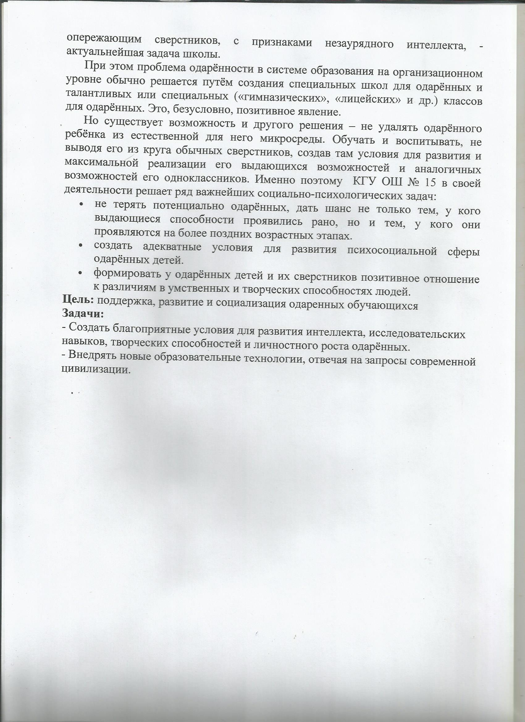 План работы с талантливыми и одаренными учащимися КГУ ОШ №15 на 2023-2024 учебный годПлан работы с талантливыми и одаренными учащимися КГУ ОШ №15 на 2023-2024 учебный год |