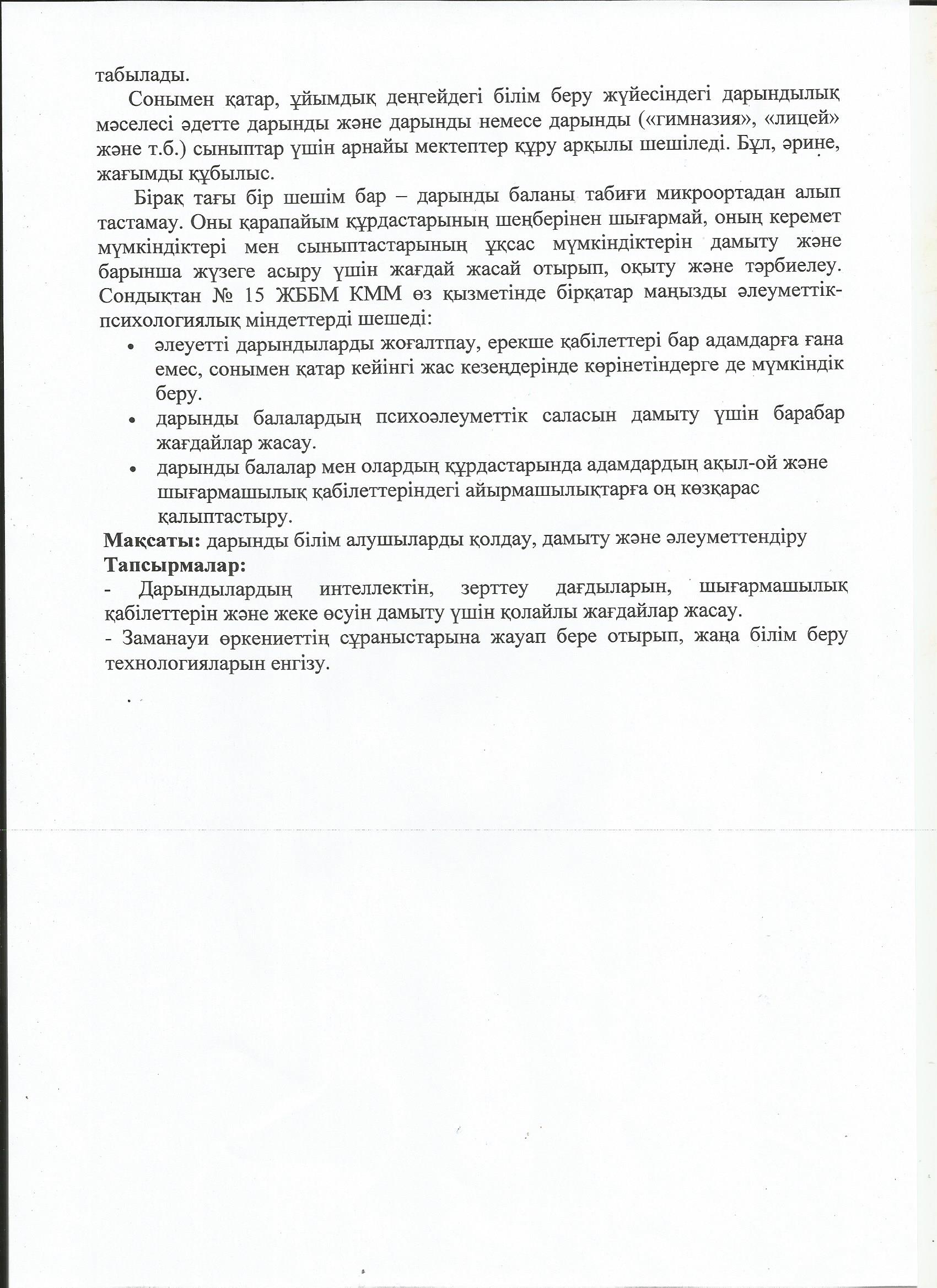2023-2024 оқу жылына арналған Қарабас кентінің №15 ЖББМ КММ Талантты және дарынды оқушылармен жұмыс жоспарыДарынды балалармен жұмыс жоспары 2 бет |