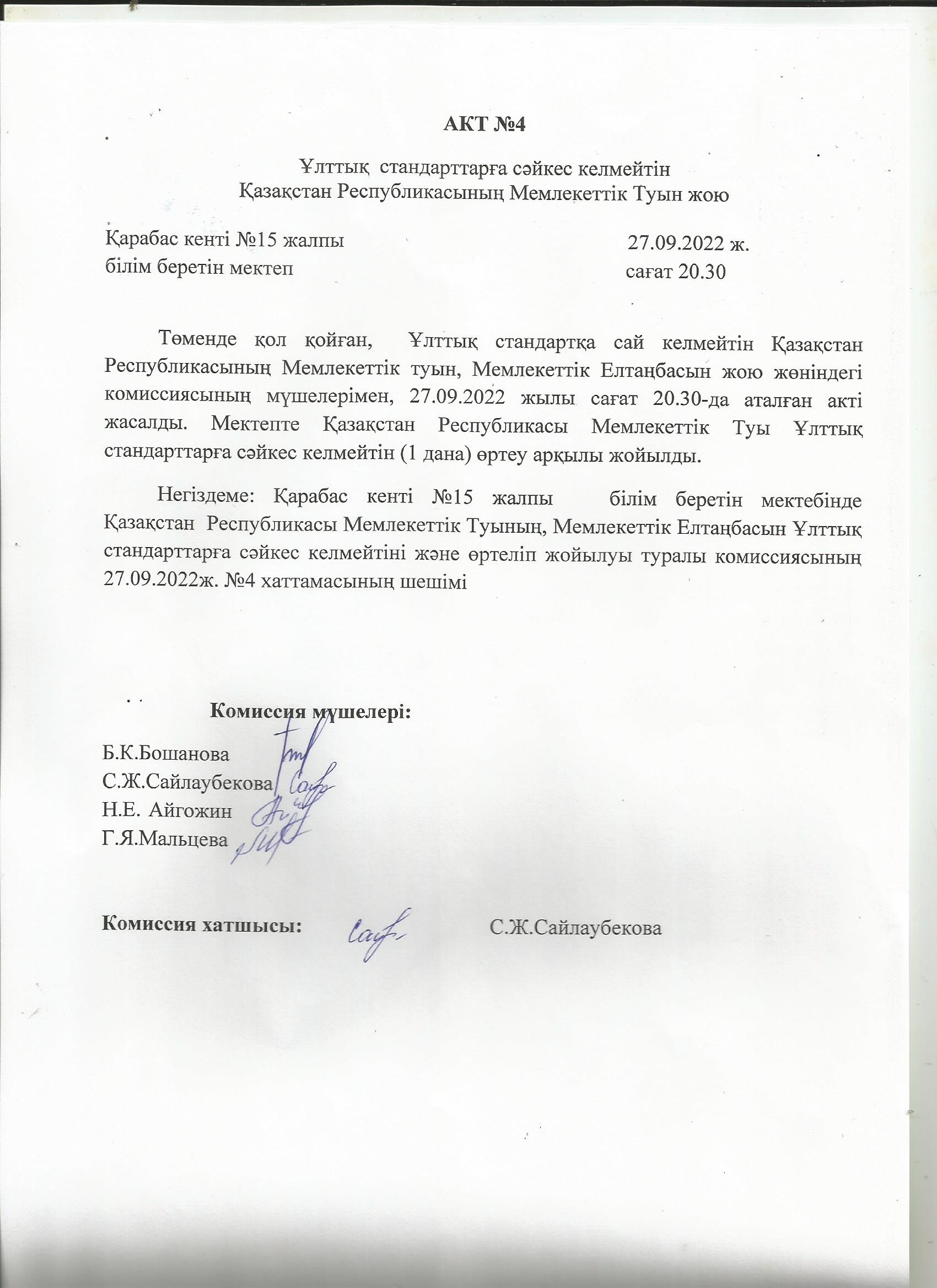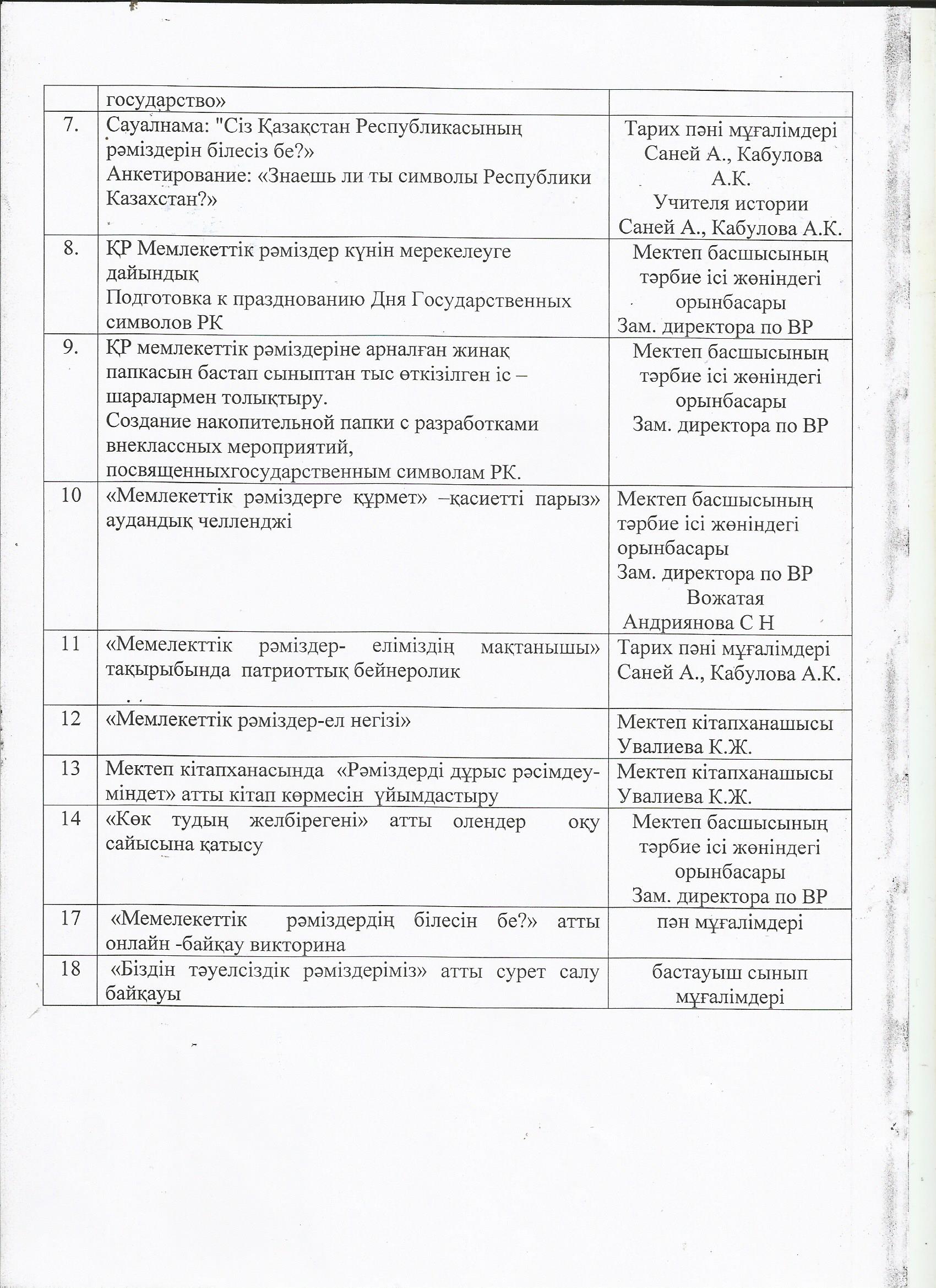 План мероприятий по изучению символов Республики Казахстан по КГУ ОШ №15