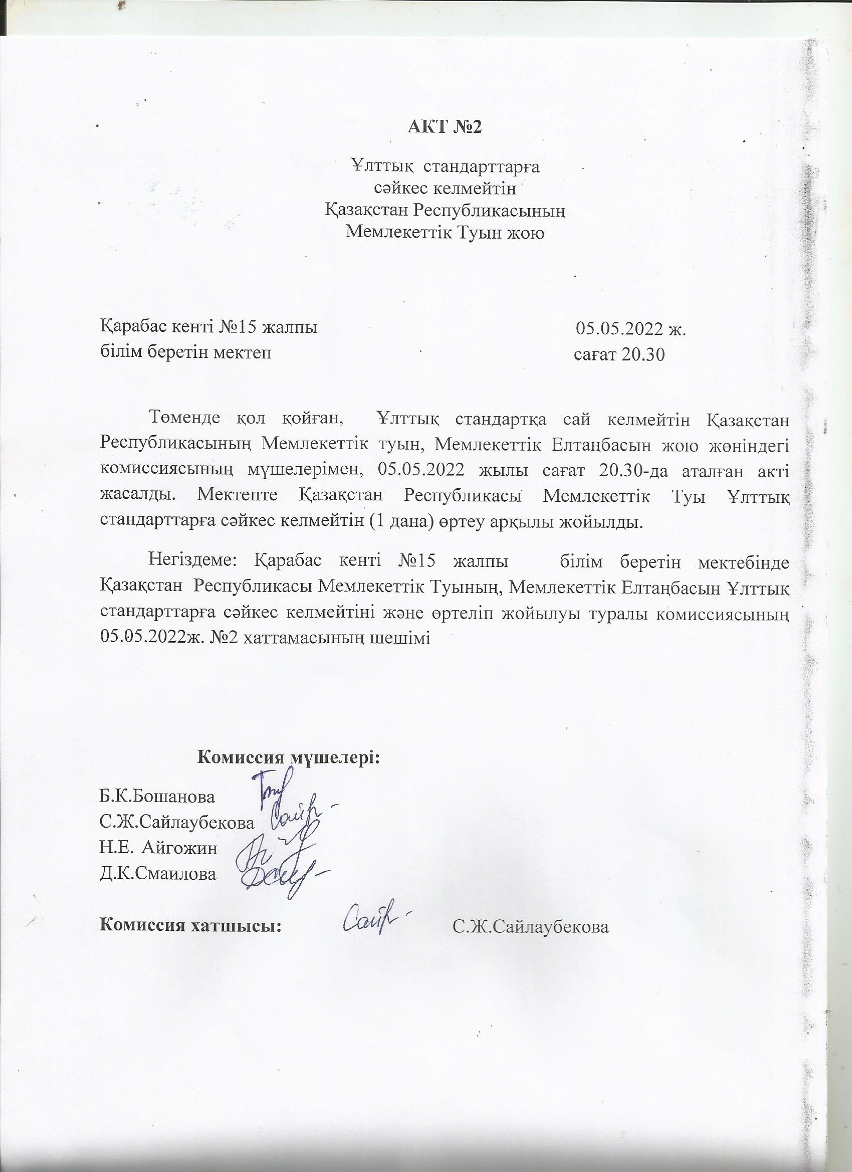 Ұлттық стандарттарға сәйкес келмейтін Қазақстан Республикасының Мемлекеттік Туын жою