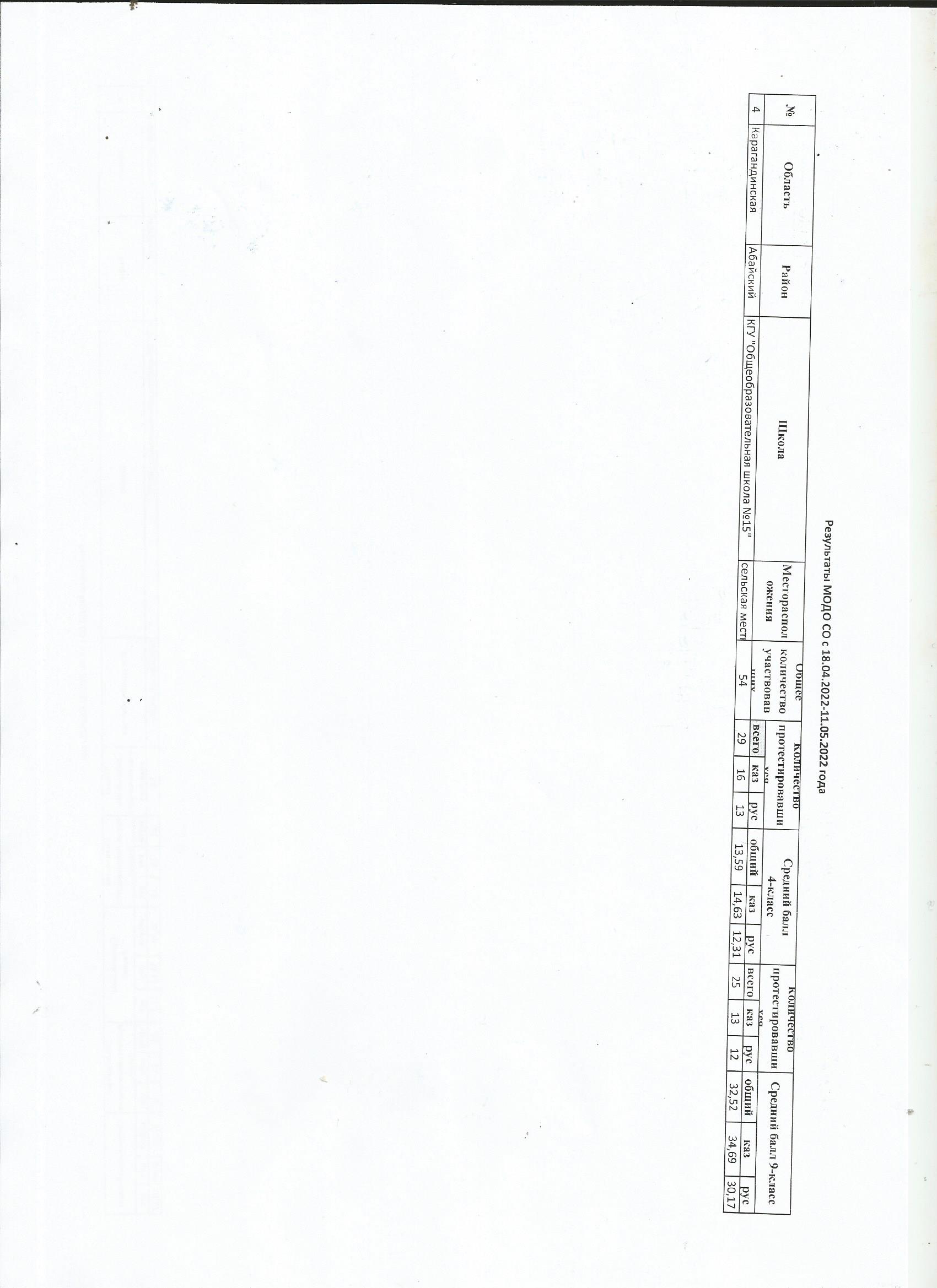 Результаты МОДОКГУ ОШ № 15 с 18.04.2022-11.05.2022 года |