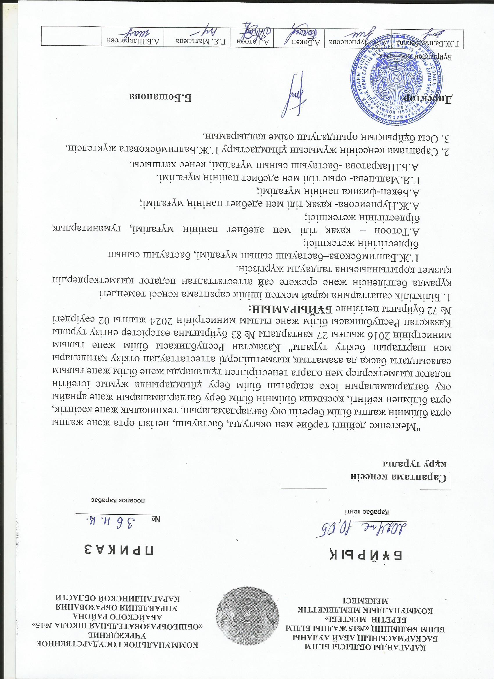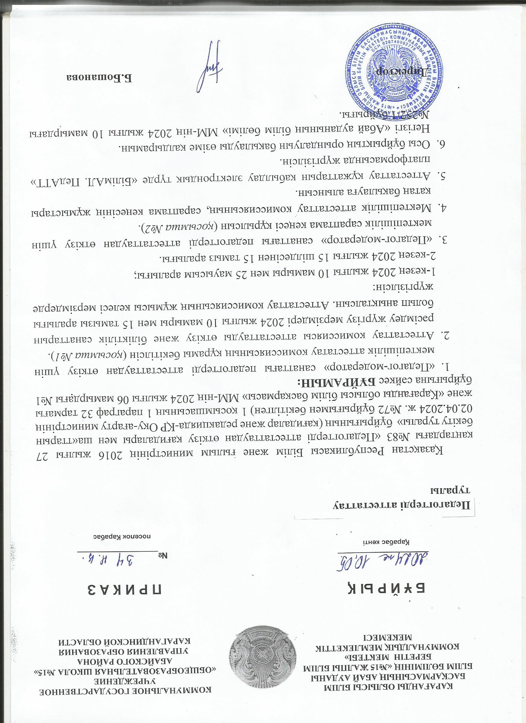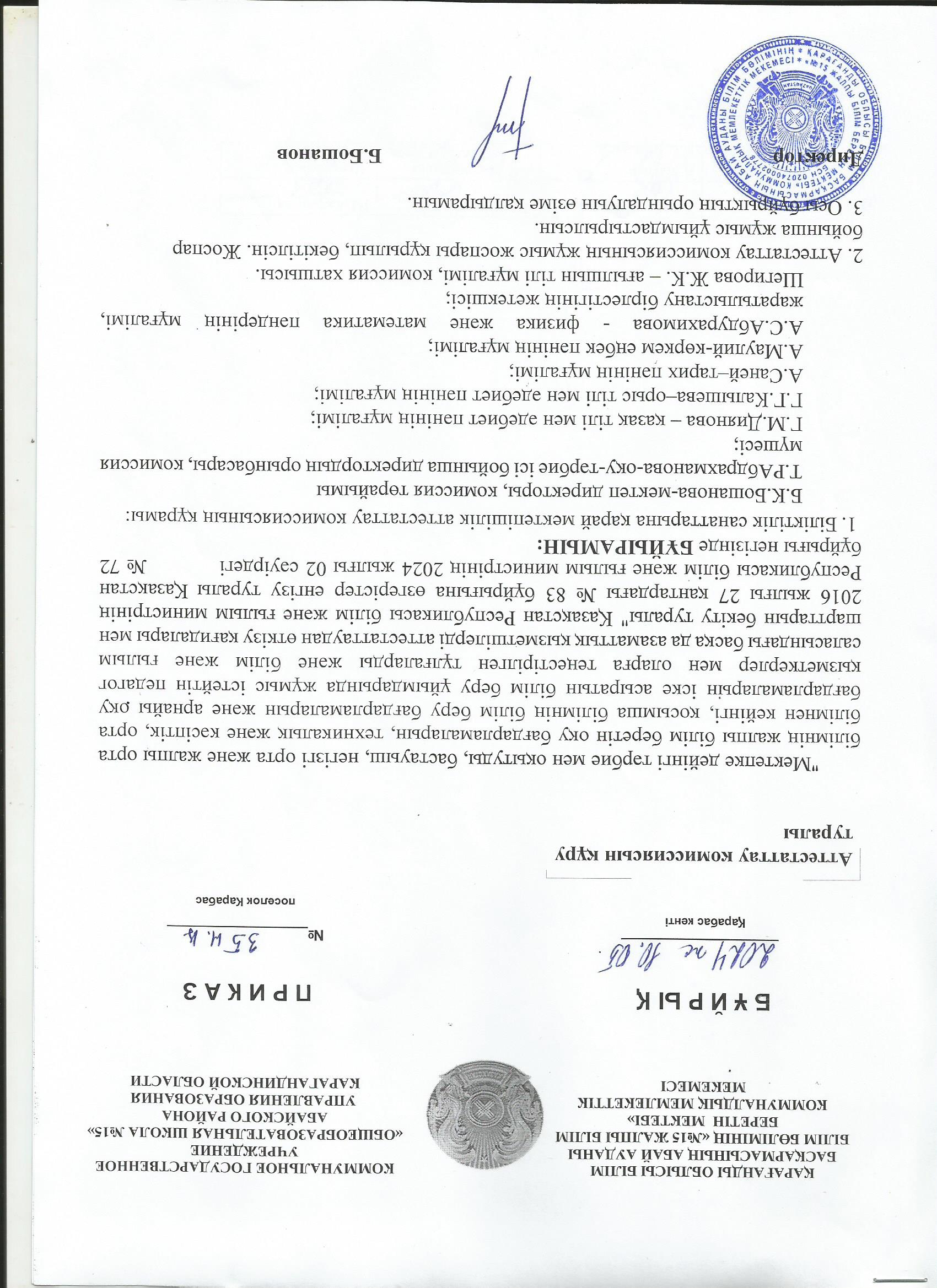 № 34 Бұйрық "ЖББМ №15" 10.05.2024 жылпедагогтерді аттестаттау туралы |