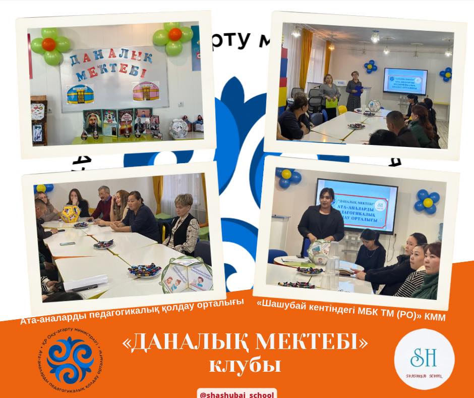 ДАНАЛЫҚ МЕКТЕБІ» клубы«Даналық мектебі» клубы қызметінің мақсаты – аға буынның педагогикалық әлеуетін өзектендіру арқылы ата-аналардың позитивті мәдениетін дамытуға жәрдемдесу.