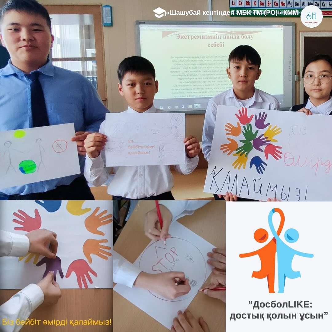 ✍???? «ДосболLIKE:достық қолын ұсын» акциясы аясында 6 «Б» сынып оқушыларымен «Біз бейбіт өмірді қалаймыз!» атты ойталқы тәрбие сағаты өтті.