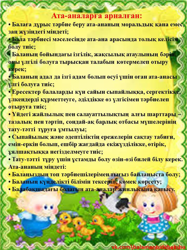 Әдістемелік нұсқауларМЕКТЕПКЕ ДЕЙІНГІ БІЛІМ БЕРУДЕ ҚАМТЫЛМАЙТЫН БАЛАЛАРДЫҢ (1-2 ЖАСТАҒЫ) АТА-АНАЛАРЫНА КЕҢЕС АЛУ БОЙЫНША ӘДІСТЕМЕЛІК ҰСЫНЫСТАР |