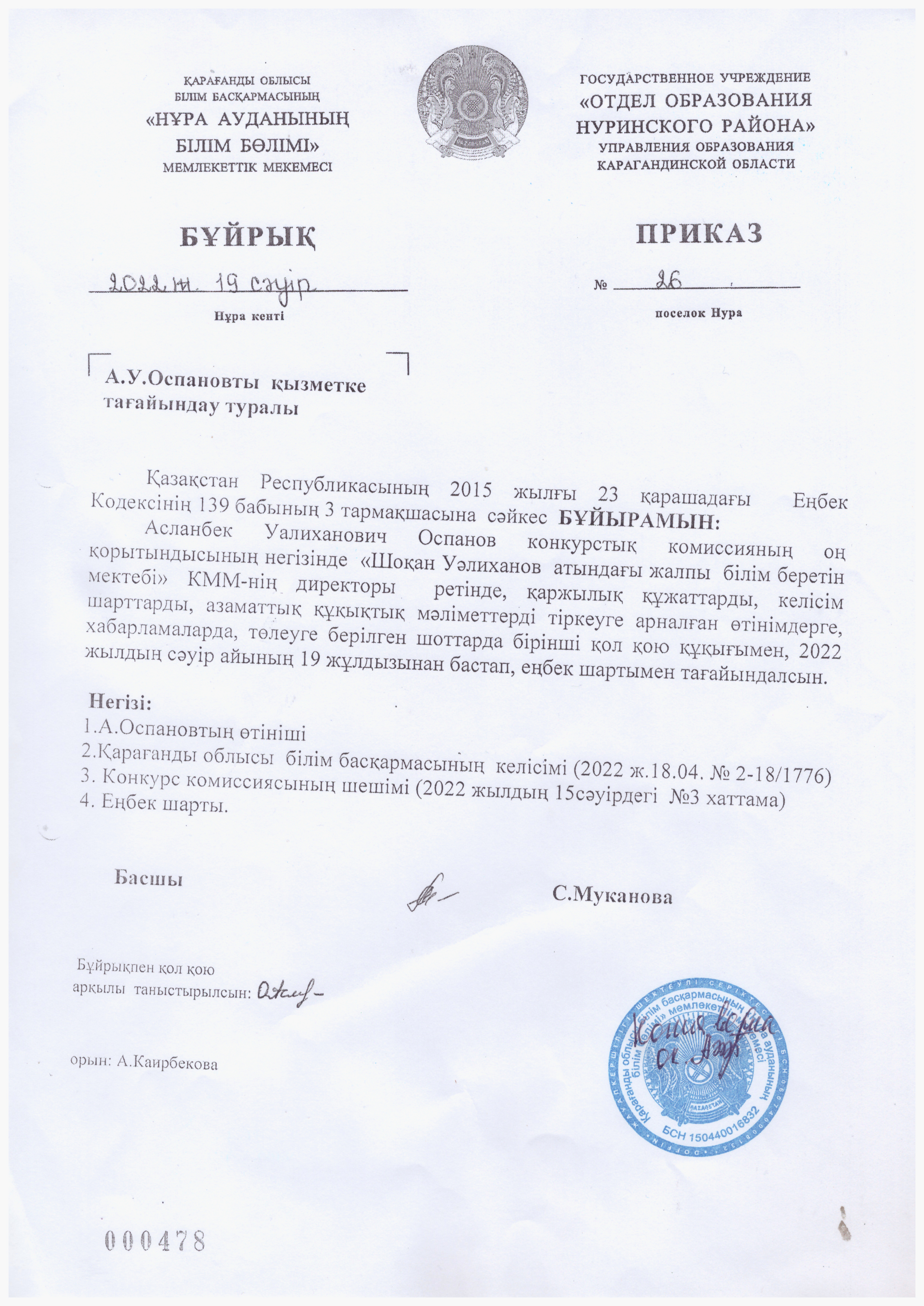 Қызметке тағайындау туралы бұйрықҚызметке тағайындау туралы бұйрық |