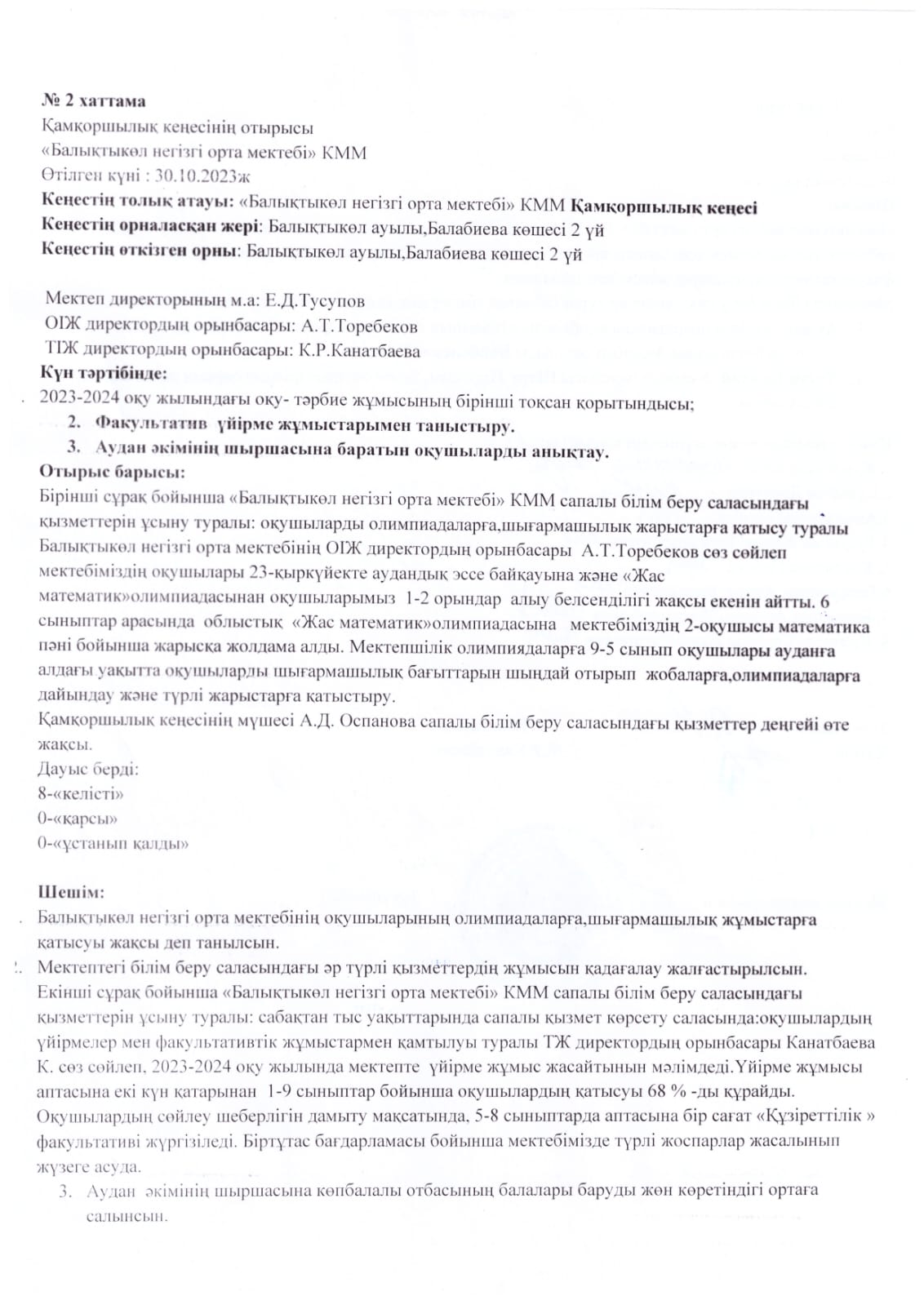 Қамқоршылық кеңес хаттамаларыХат 2 |