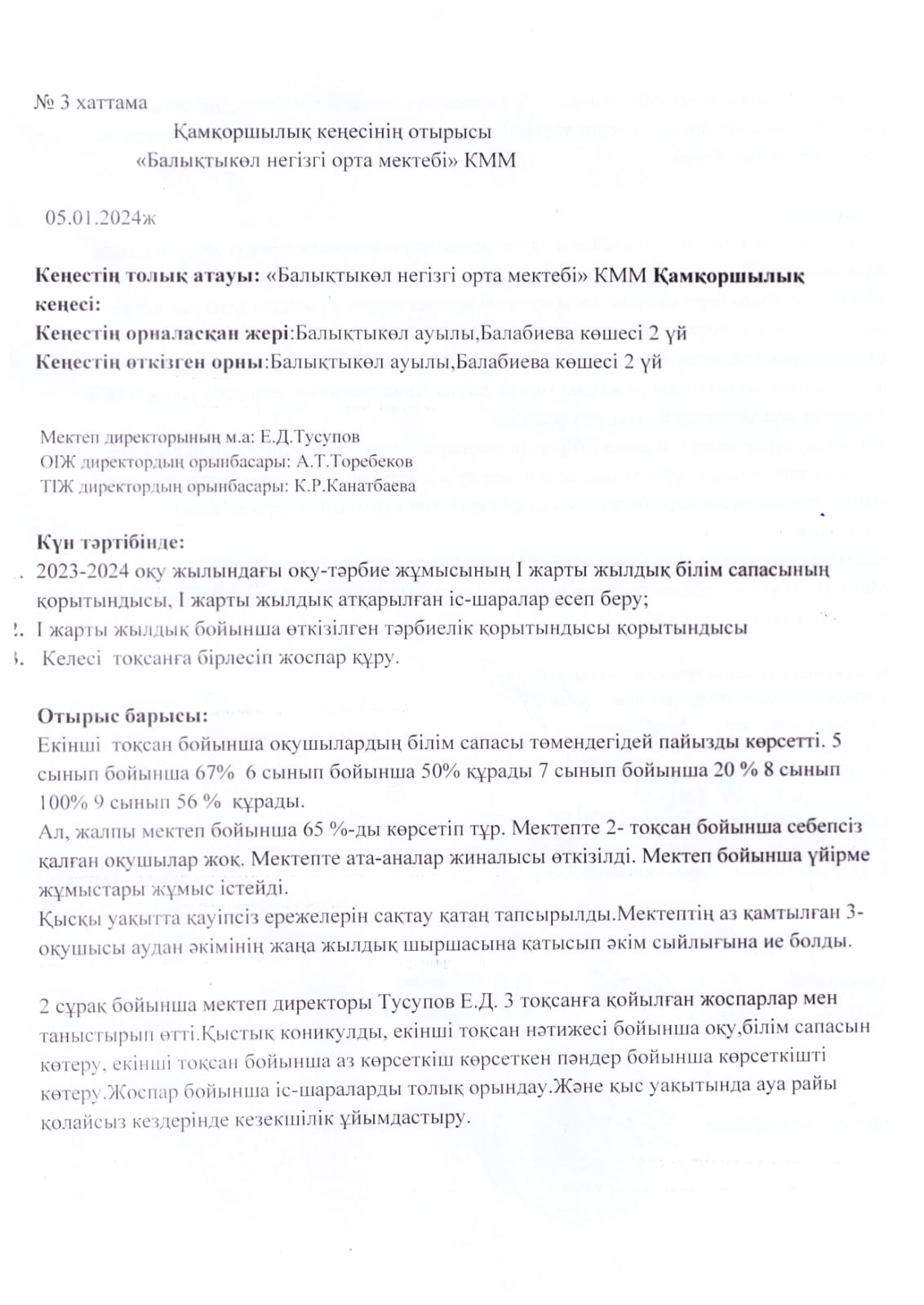 Қамқоршылық кеңес хаттамаларыХат 3 |