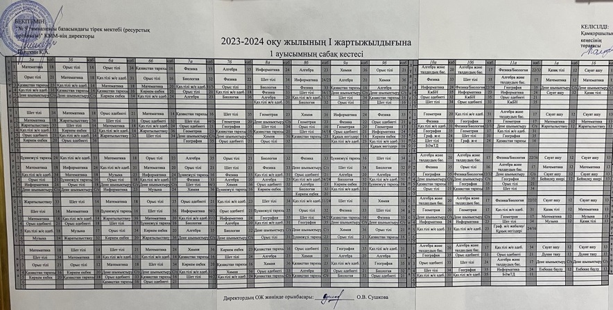 Расписание уроков 2 смены на 1 полугодие 2023-2024 учебного года.каз