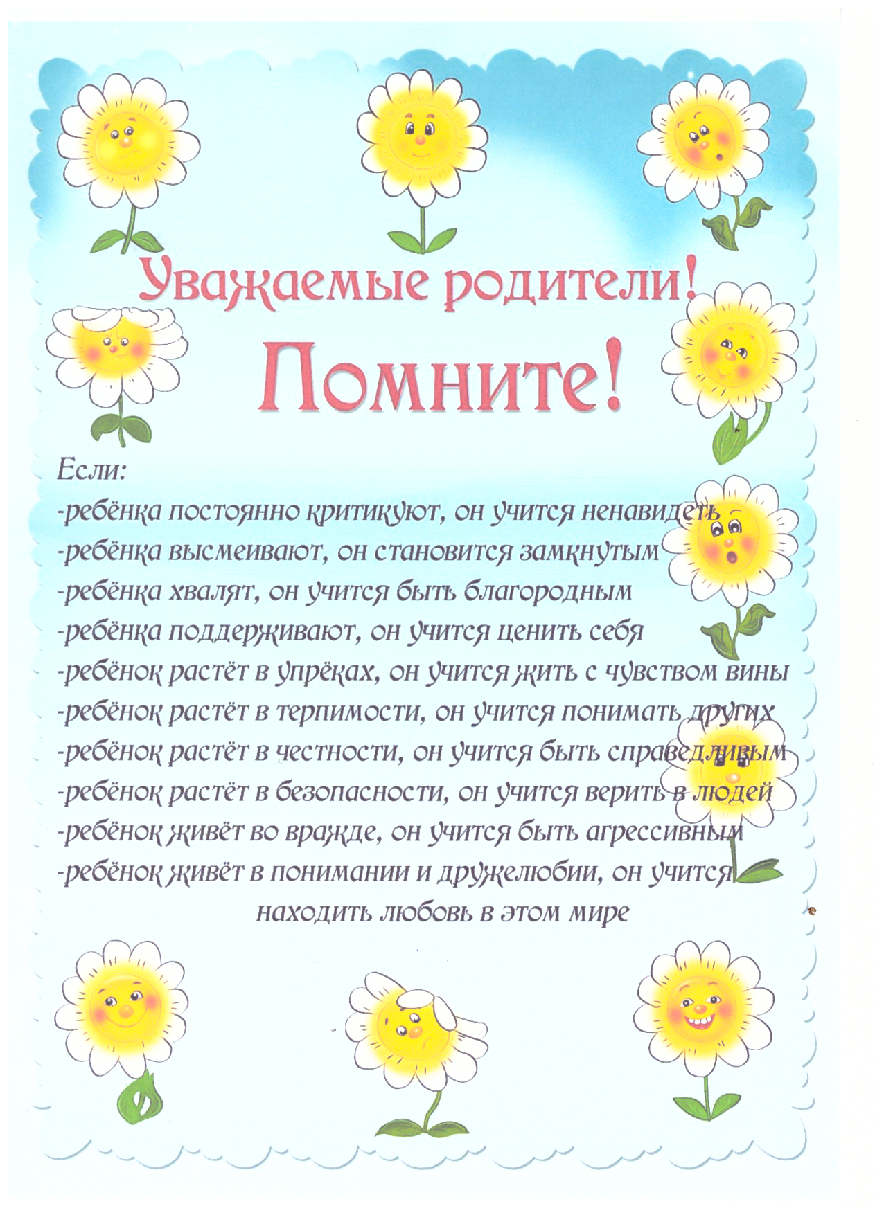 психолого-педагогические заметкипамятка для родителей |