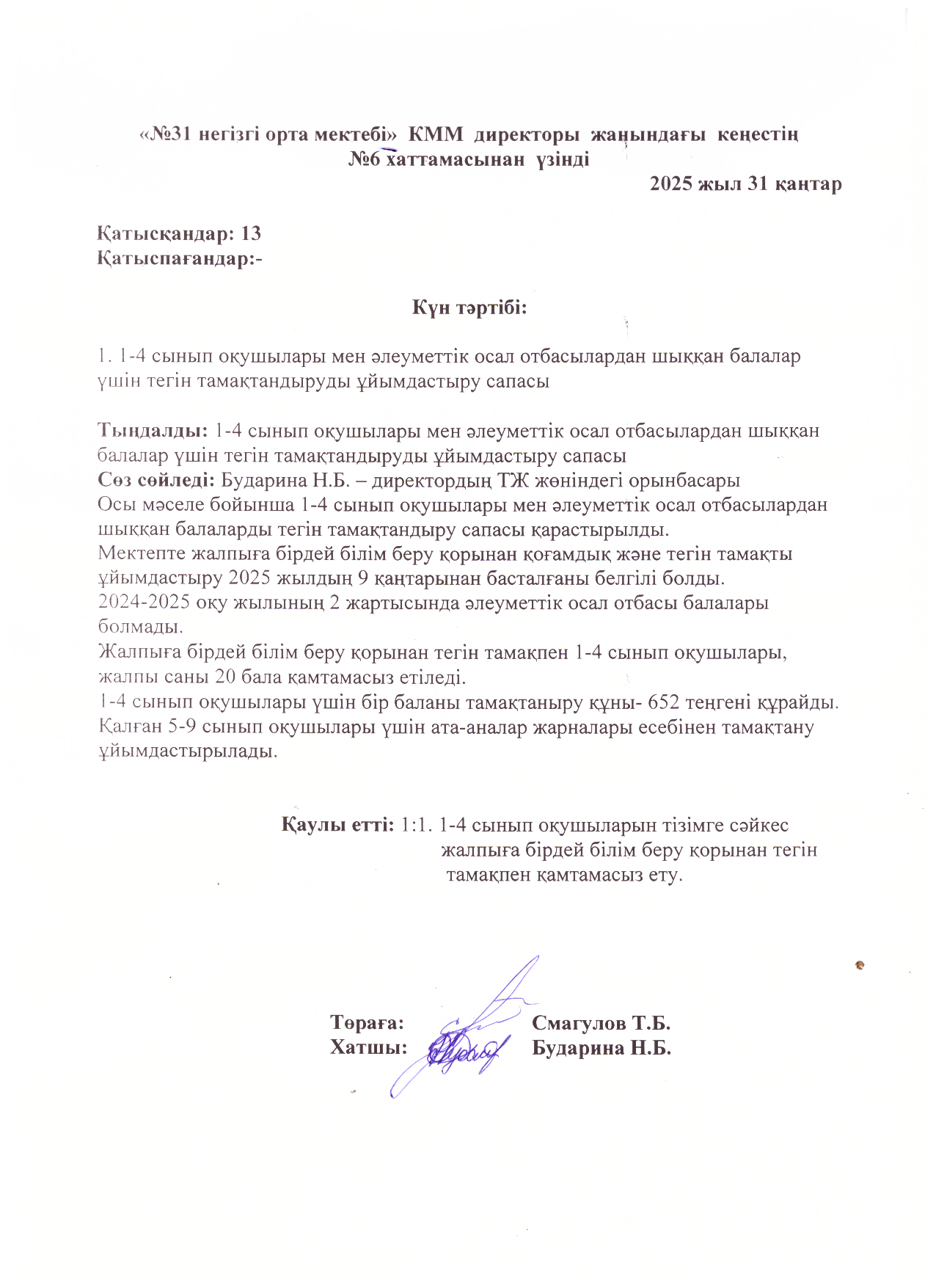 выписка из протокола №6 совещания при директоре от 31.01.2025 года каз