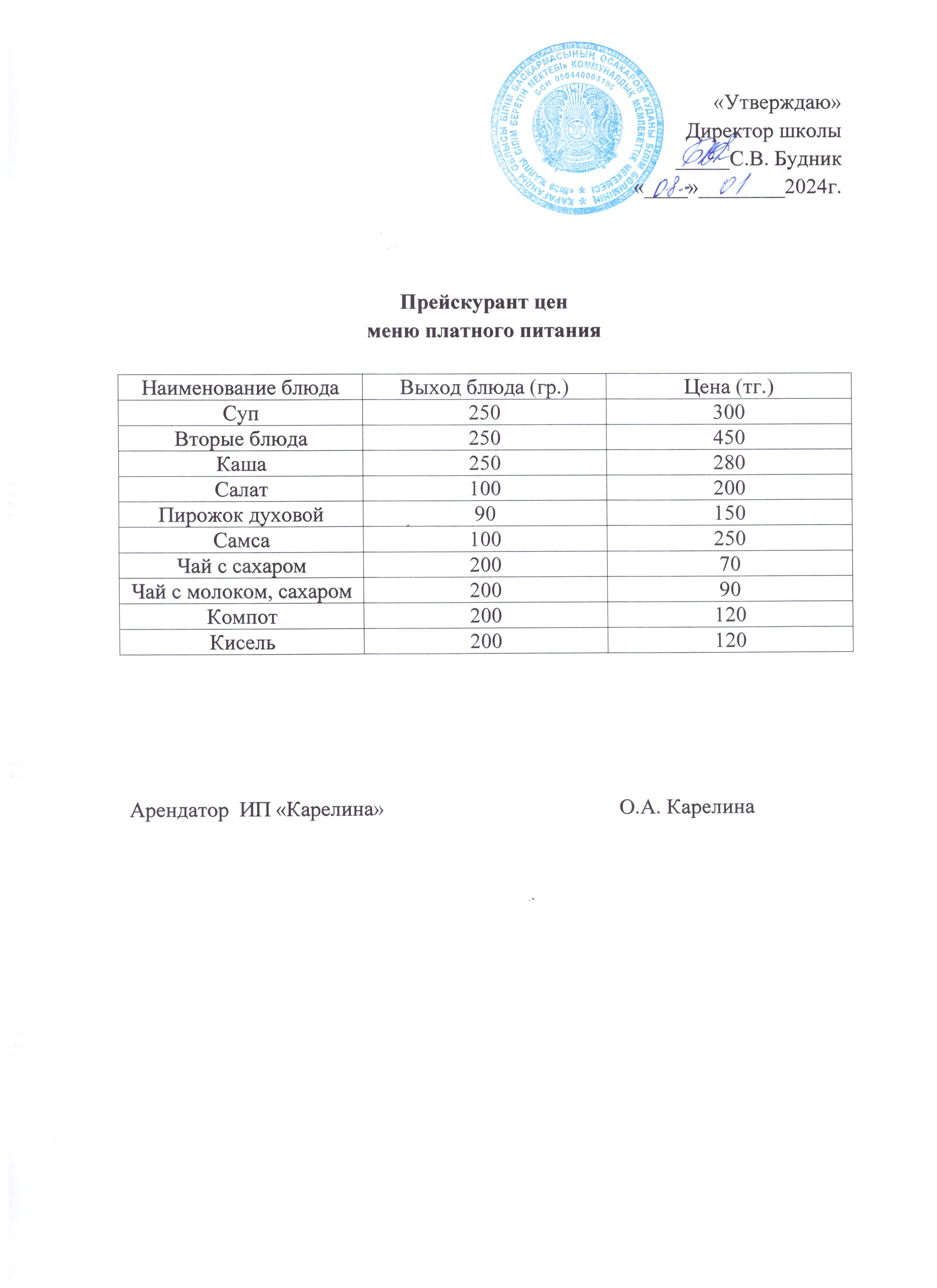 Прейскурант ценянварь 001 |