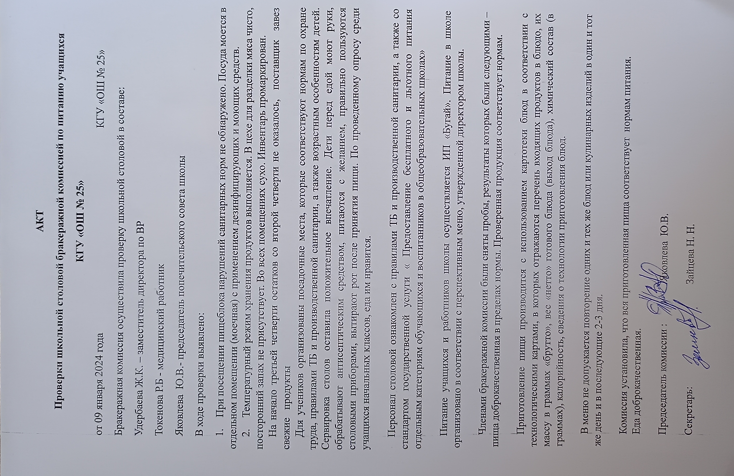 Акт бракеражной КомиссииПроверка школьной столовой бракеражной комиссии по питанию учащихся |