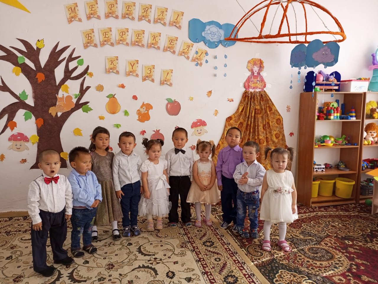 Күз кереметіКүз мезгілінің ерекшеліктері туралы сөйлем, әңгіме құрастырту. Күз мезгілі, адамдардың күзгі еңбегі туралы әңгімелеуге үйрету.адамдар үшін жемістер мен көкөністердің маңызы туралы түсінік беру. Балалалдың сөздік қорларын дамыту. Жазуға қолдарын жаттықтыру.Мақсаты: Күз мезгілінің ерекшеліктері туралы сөйлем, әңгіме құрастырту. |