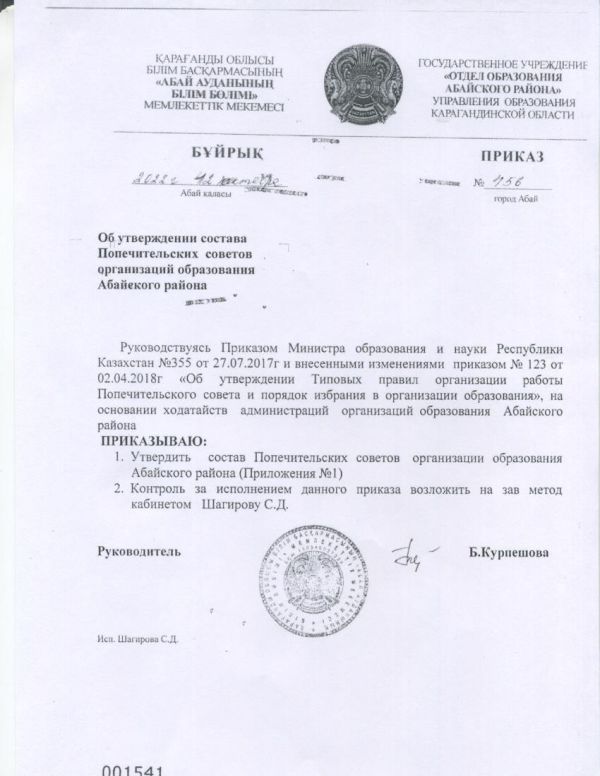 попечительский советПриказ №456 |