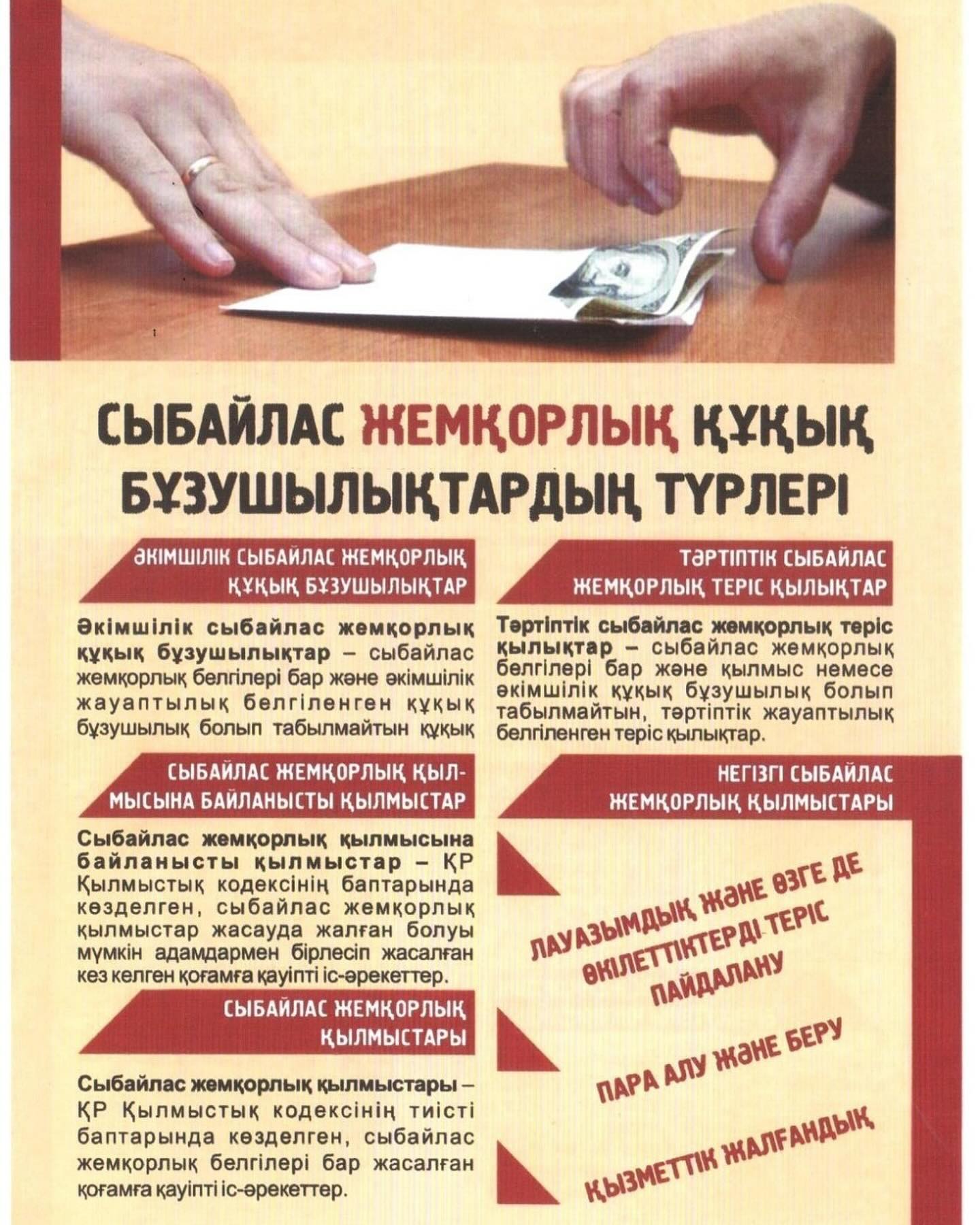 Сыбайлас жемқорлыққа қарсы іс – қимыл-әрбір азаматтың міндетіСыбайлас жемқорлық әлеуметтік - экономикалық даму, нарықтық экономика құру, инвестициялар тарту процесін тежейді. Ол демократиялық мемлекеттің саяси және қоғамдық институттарына теріс әсер етеді, елдің болашақ дамуына елеулі қауіп төндіреді. Сыбайлас жемқорлыққа қарсы күрес Қазақстандағы мемлекеттік саясаттың негізгі басымдықтарының бірі ретінде айқындалған.