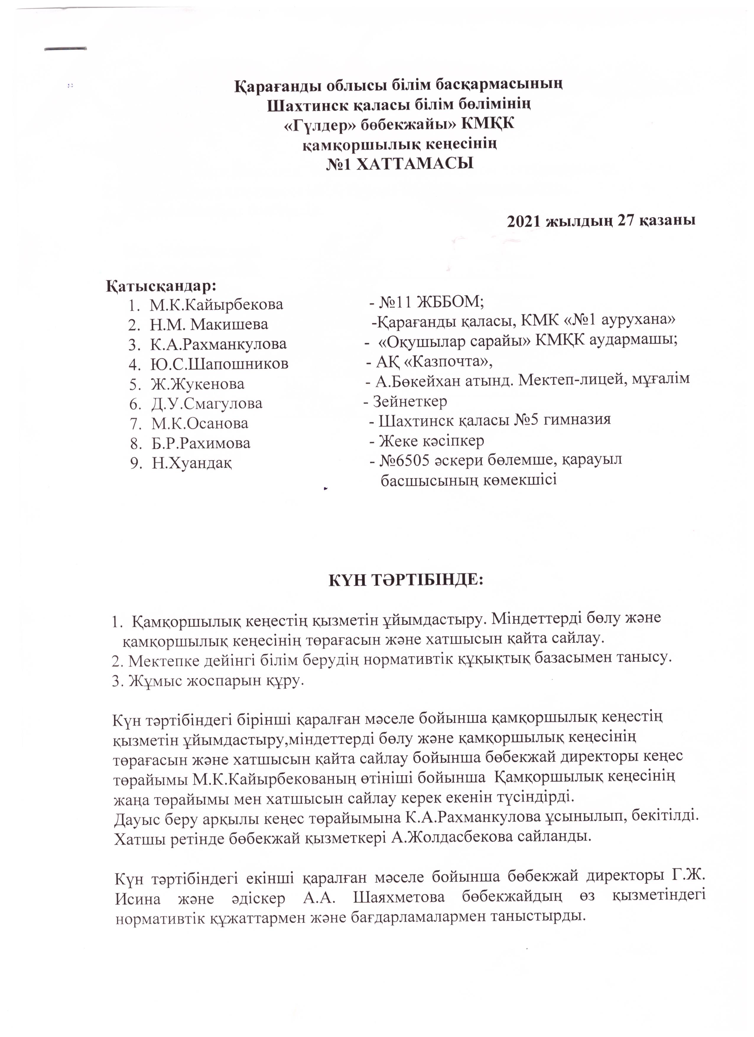 Хаттама №12021 жылғы 27 қазандағы №1 хаттама |