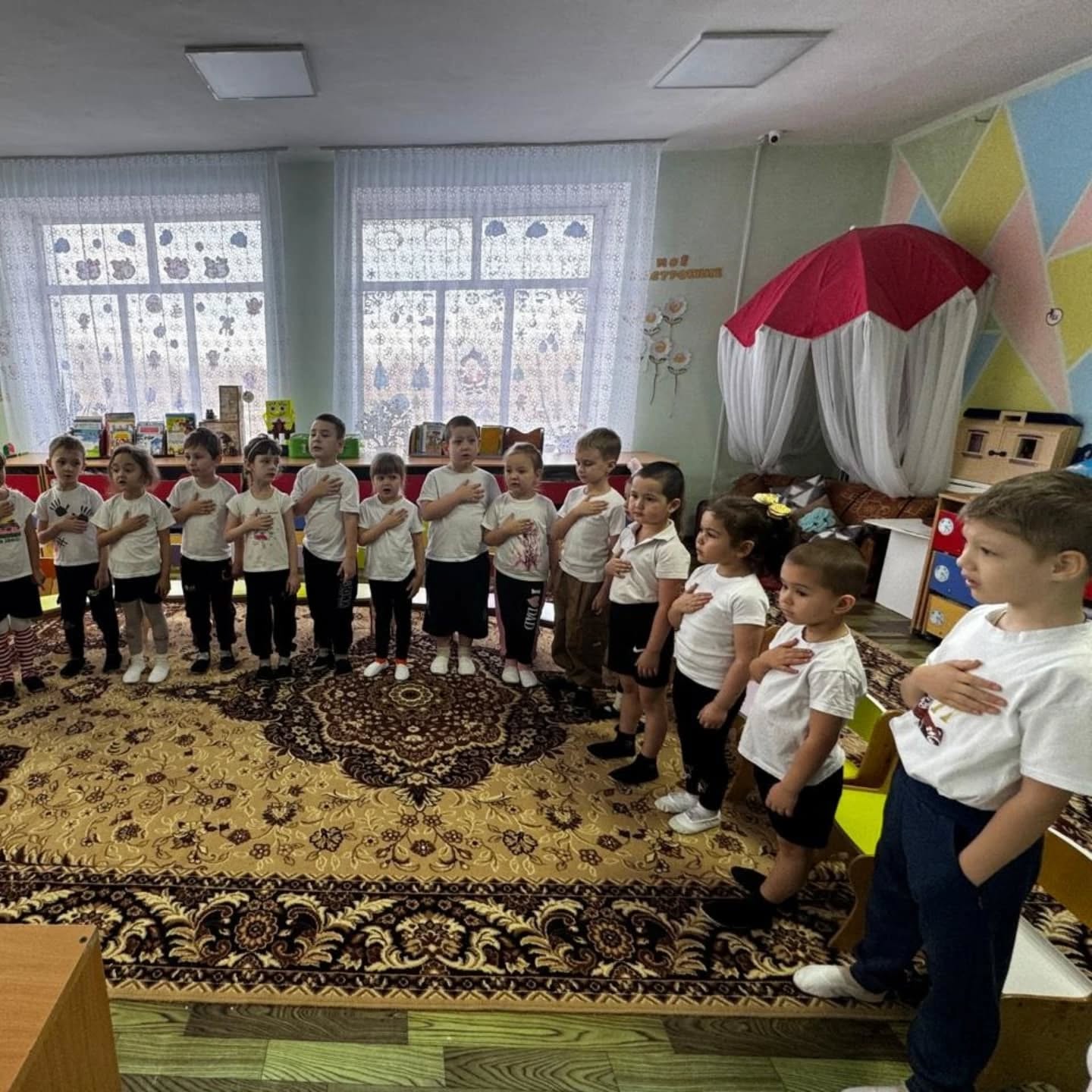 Прослушивание гимна во всех возрастных группах по плану реализации "Біртұтас тәрбие"