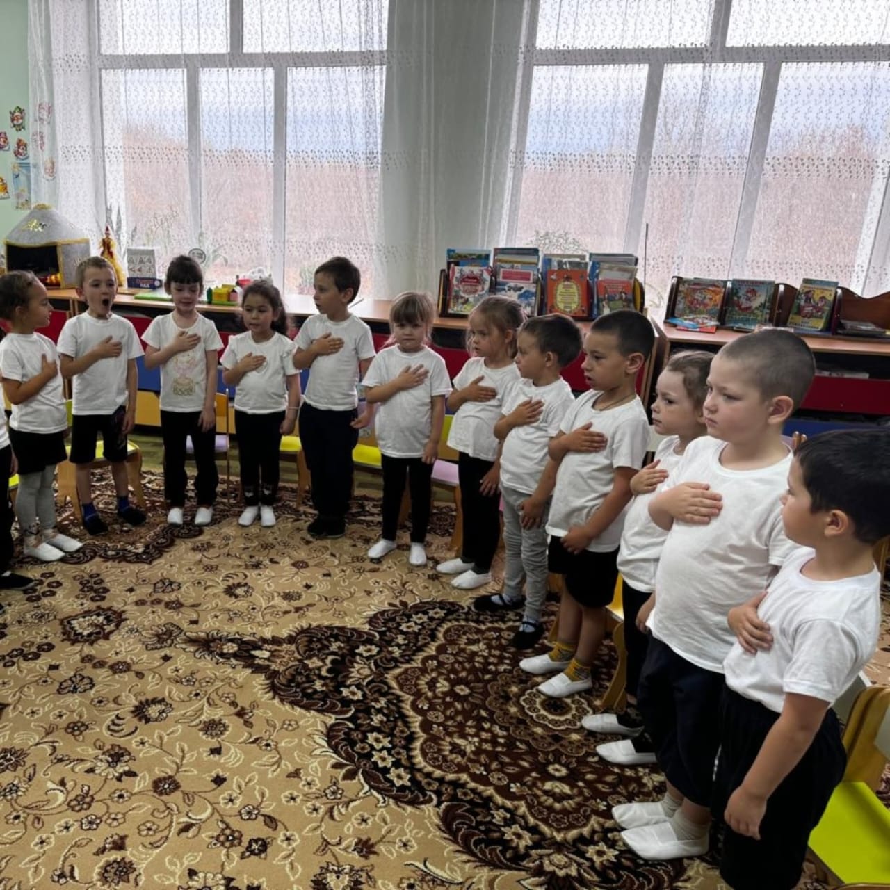 Слушание гимна согласно реализации программы " Біртұтас тәрбие "Слушание гимна согласно реализации программы " Біртұтас тәрбие " старшая группа "Кызыл телпек" и предшкольная группа "Карлыгаш" |